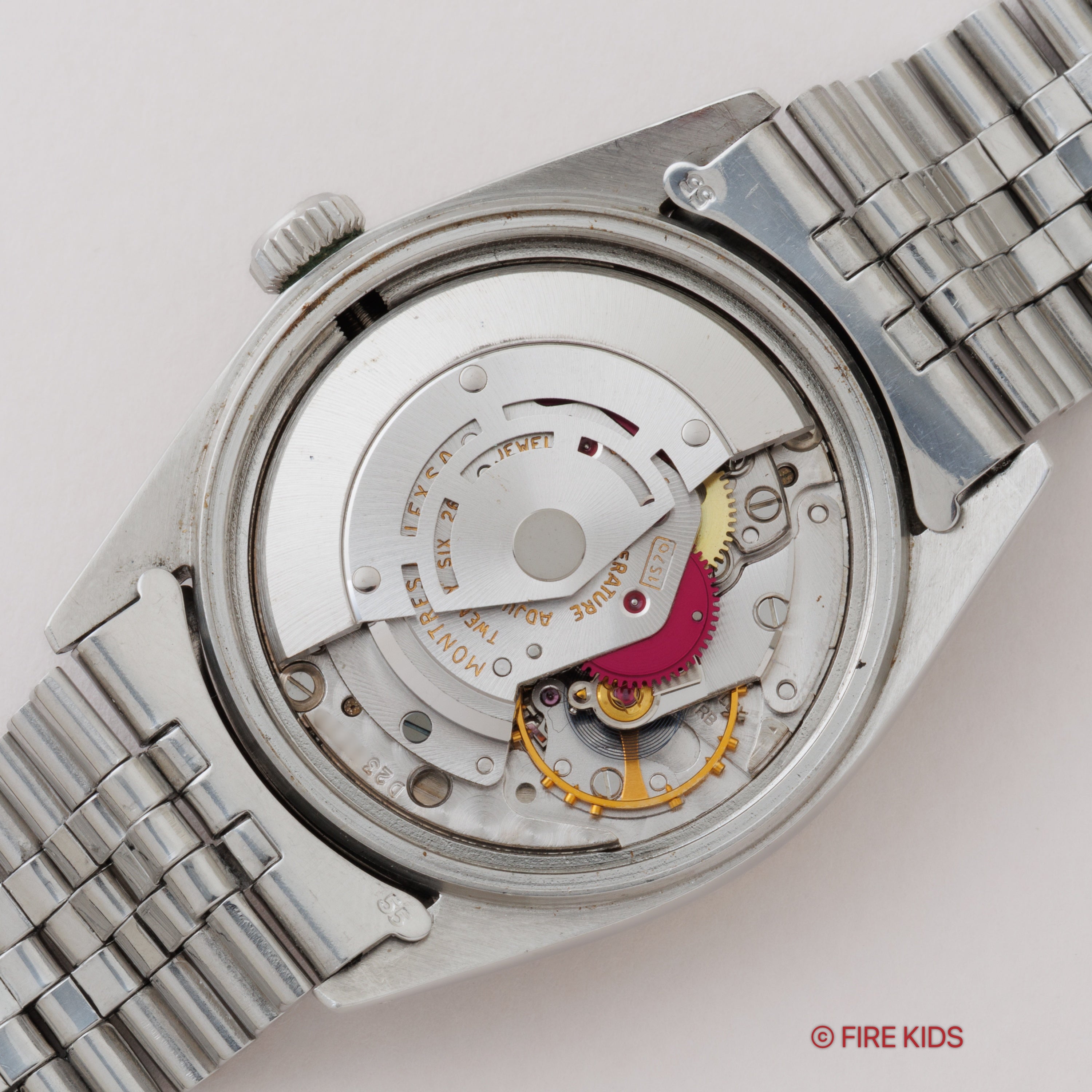 - ヴィンテージ時計の特性上、風防・パッキン・リューズ・バネ棒などの消耗部品は後年メンテナンス過程で交換されている場合がございます。オリジナル性を重視しておりますが、必要に応じて適切な部品にて調整されていますので、よりコレクション性重視のお求めのお客様は事前にご確認ください。