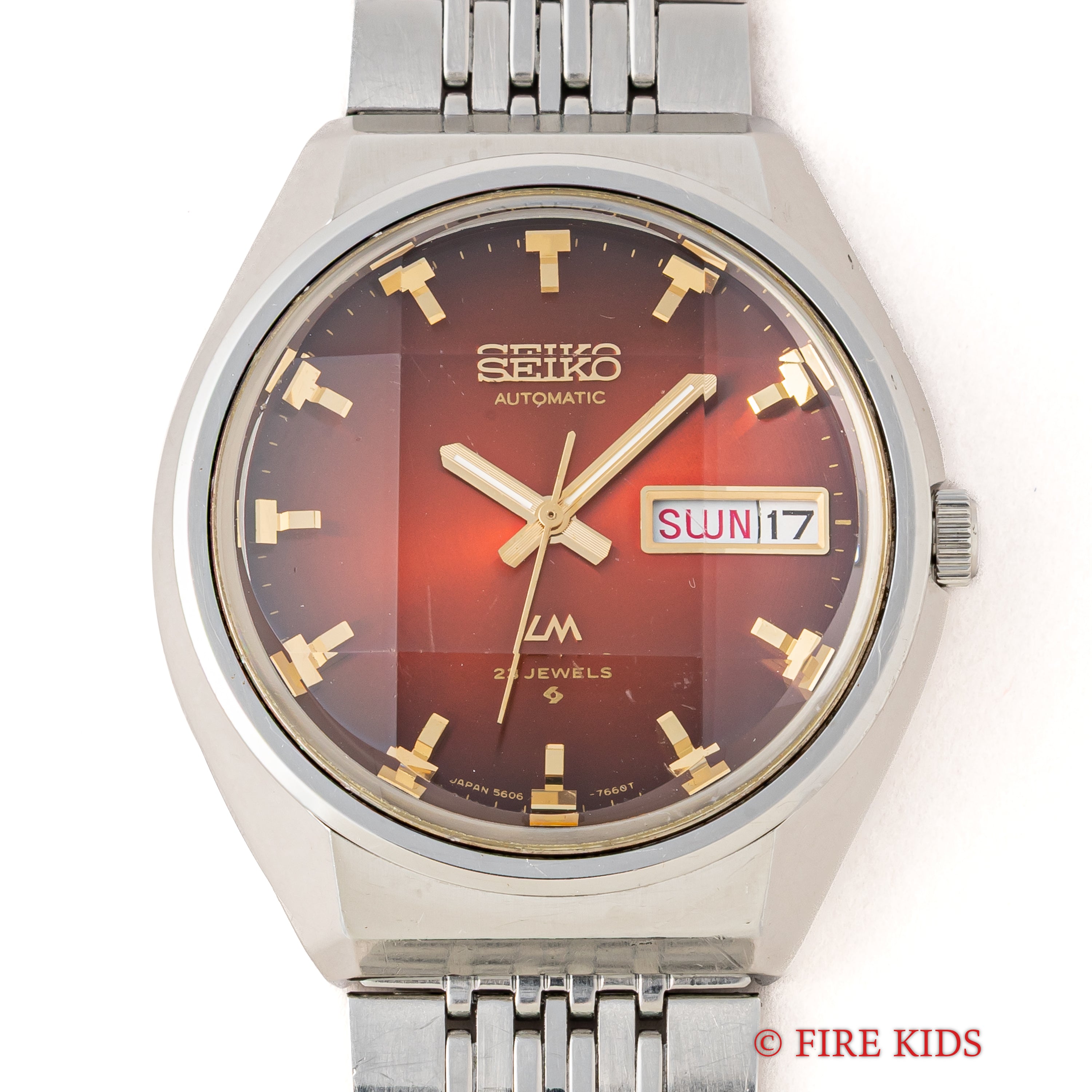 セイコー ロードマチック 1973年製 自動巻き レッドダイヤル 5面カットガラス 56LM 5606-7320 純正ブレス