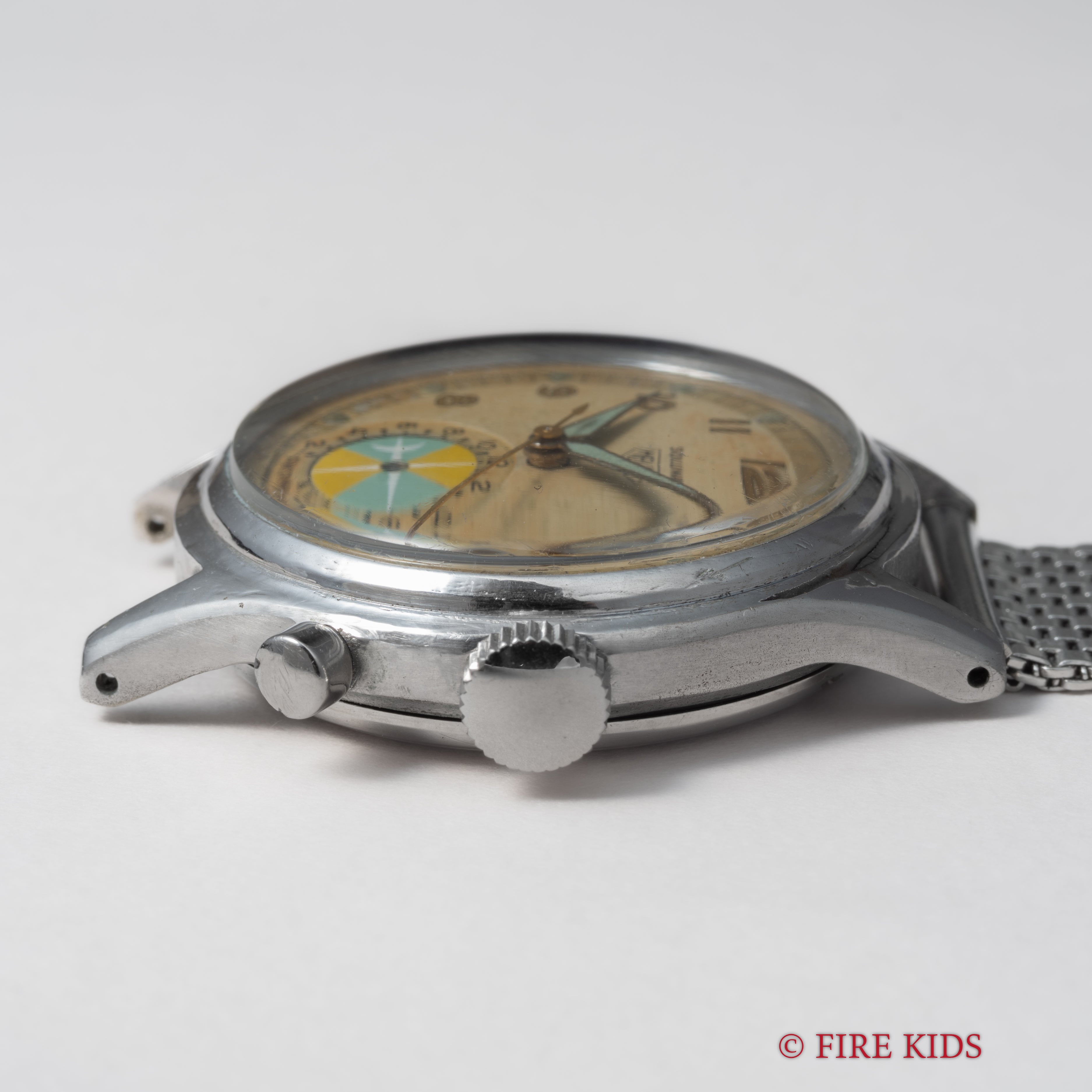 - ヴィンテージ時計の特性上、風防・パッキン・リューズ・バネ棒などの消耗部品は後年メンテナンス過程で交換されている場合がございます。オリジナル性を重視しておりますが、必要に応じて適切な部品にて調整されていますので、よりコレクション性重視のお求めのお客様は事前にご確認ください。