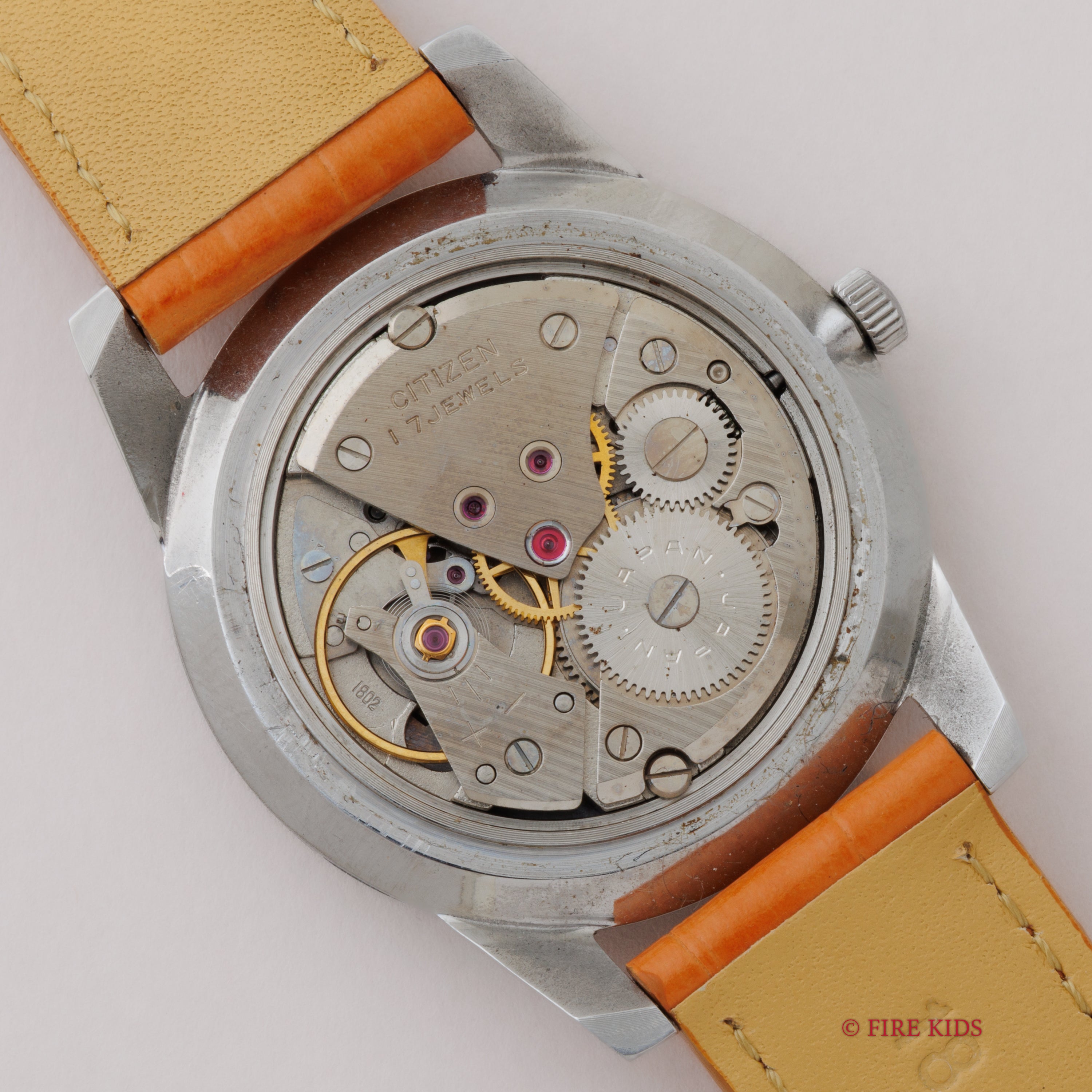 - ヴィンテージ時計の特性上、風防・パッキン・リューズ・バネ棒などの消耗部品は後年メンテナンス過程で交換されている場合がございます。オリジナル性を重視しておりますが、必要に応じて適切な部品にて調整されていますので、よりコレクション性重視のお求めのお客様は事前にご確認ください。