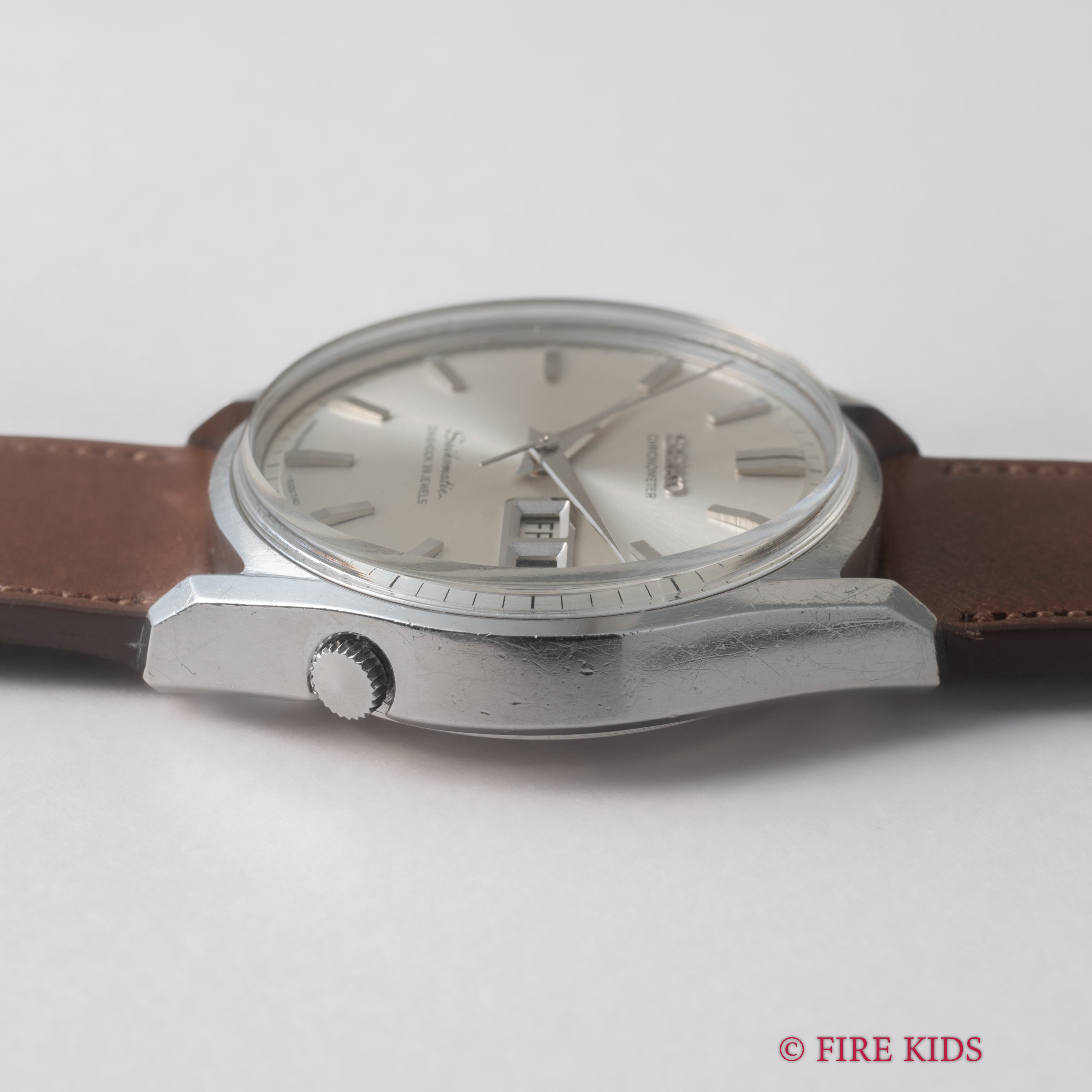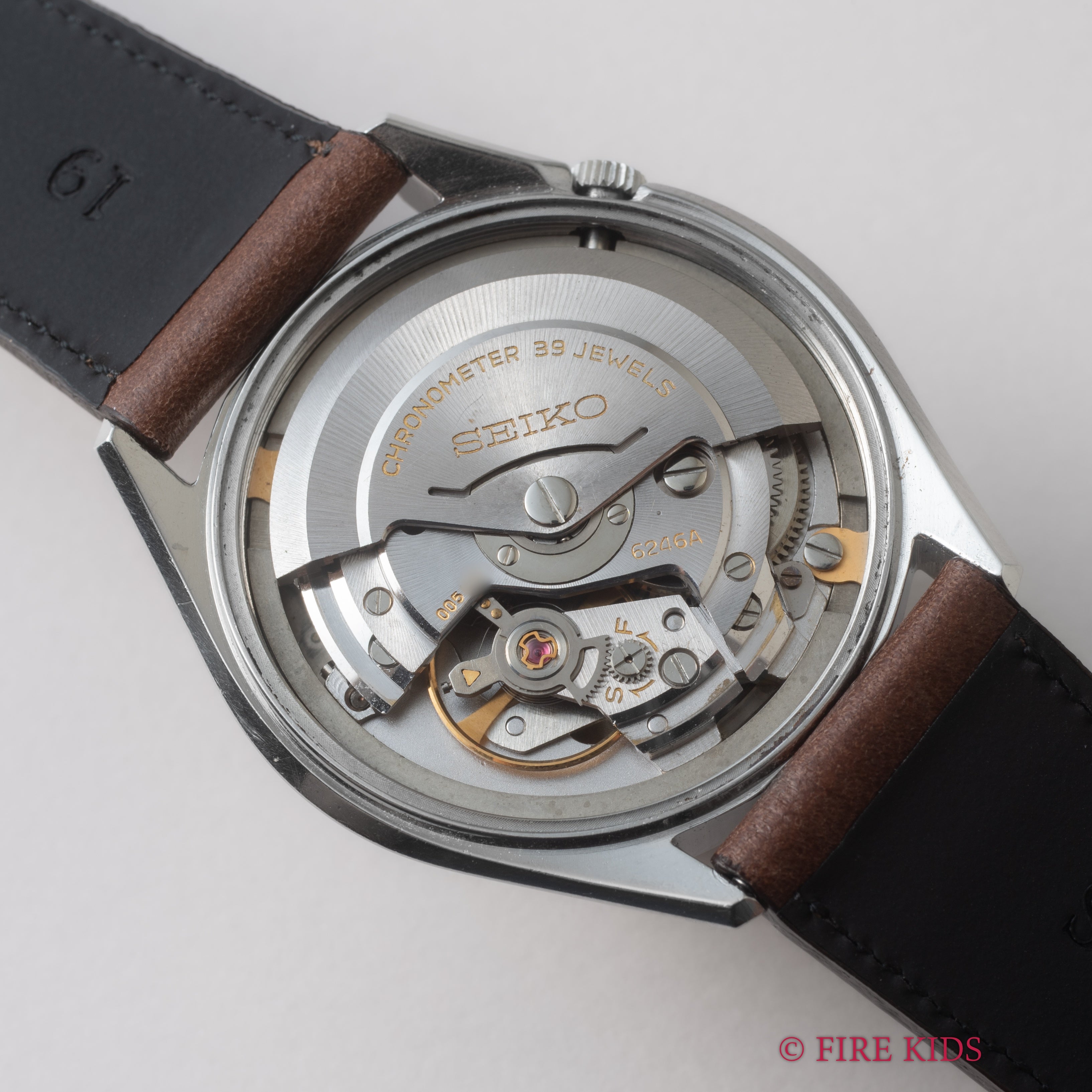 - ヴィンテージ時計の特性上、風防・パッキン・リューズ・バネ棒などの消耗部品は後年メンテナンス過程で交換されている場合がございます。オリジナル性を重視しておりますが、必要に応じて適切な部品にて調整されていますので、よりコレクション性重視のお求めのお客様は事前にご確認ください。