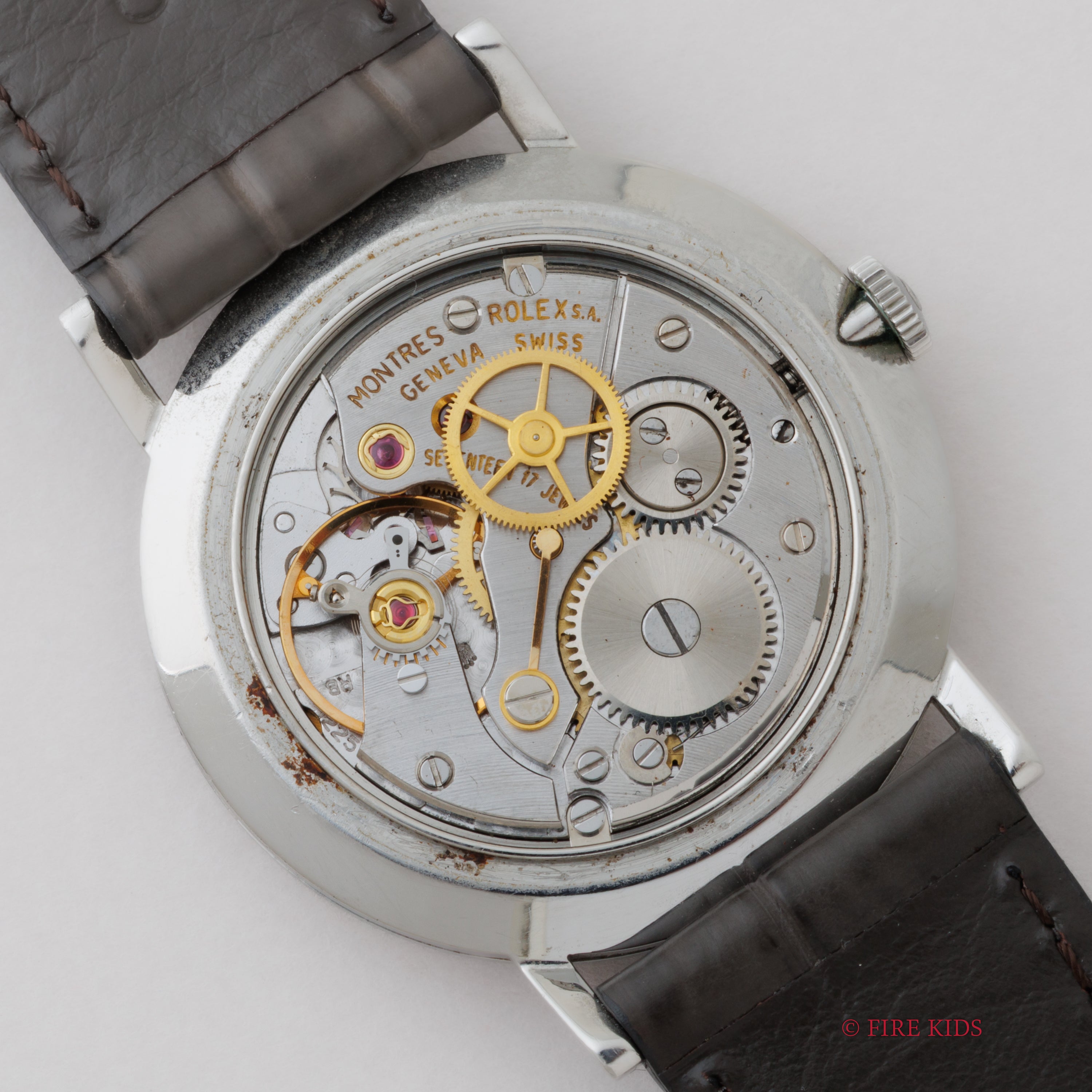 - ヴィンテージ時計の特性上、風防・パッキン・リューズ・バネ棒などの消耗部品は後年メンテナンス過程で交換されている場合がございます。オリジナル性を重視しておりますが、必要に応じて適切な部品にて調整されていますので、よりコレクション性重視のお求めのお客様は事前にご確認ください。