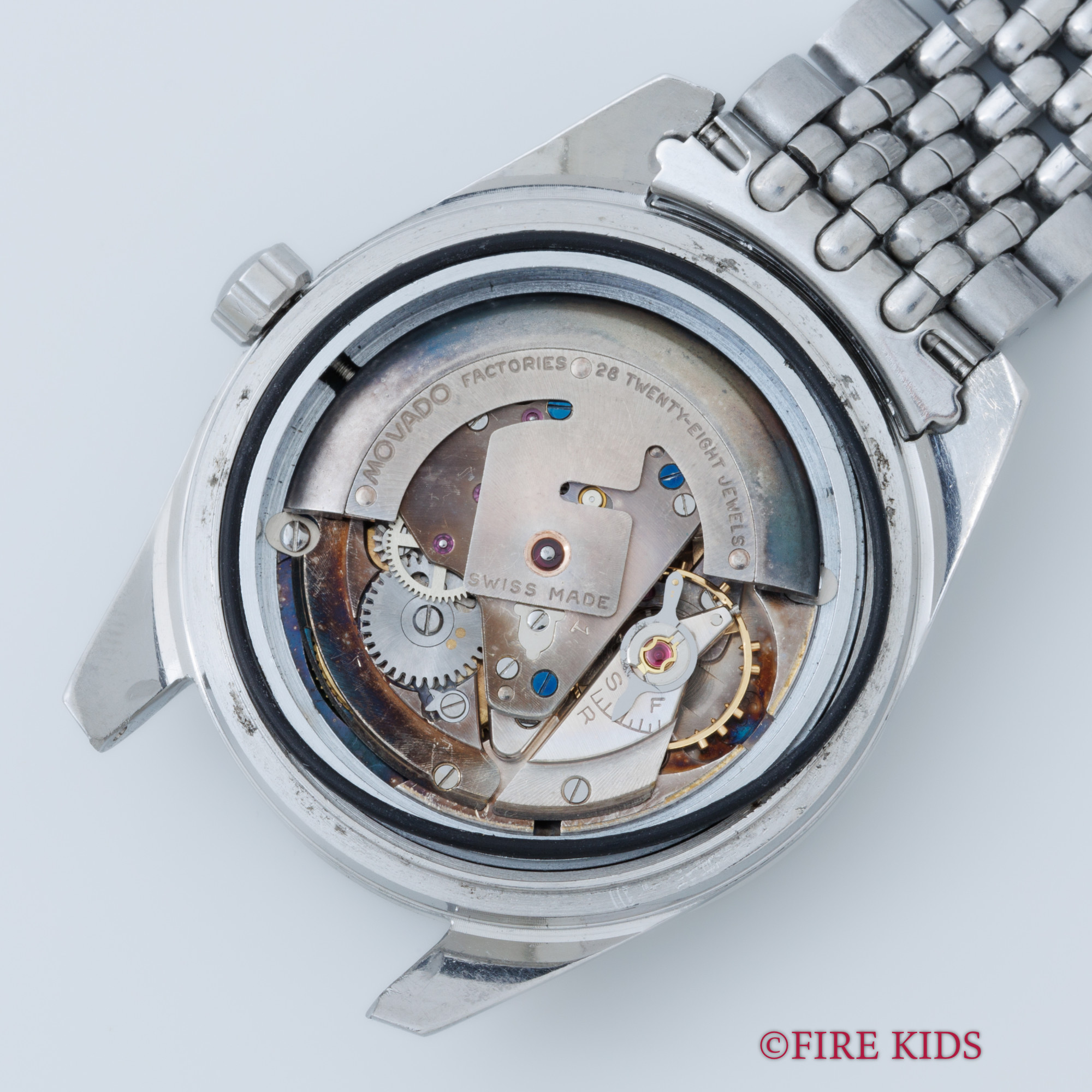 - ヴィンテージ時計の特性上、風防・パッキン・リューズ・バネ棒などの消耗部品は後年メンテナンス過程で交換されている場合がございます。オリジナル性を重視しておりますが、必要に応じて適切な部品にて調整されていますので、よりコレクション性重視のお求めのお客様は事前にご確認ください。