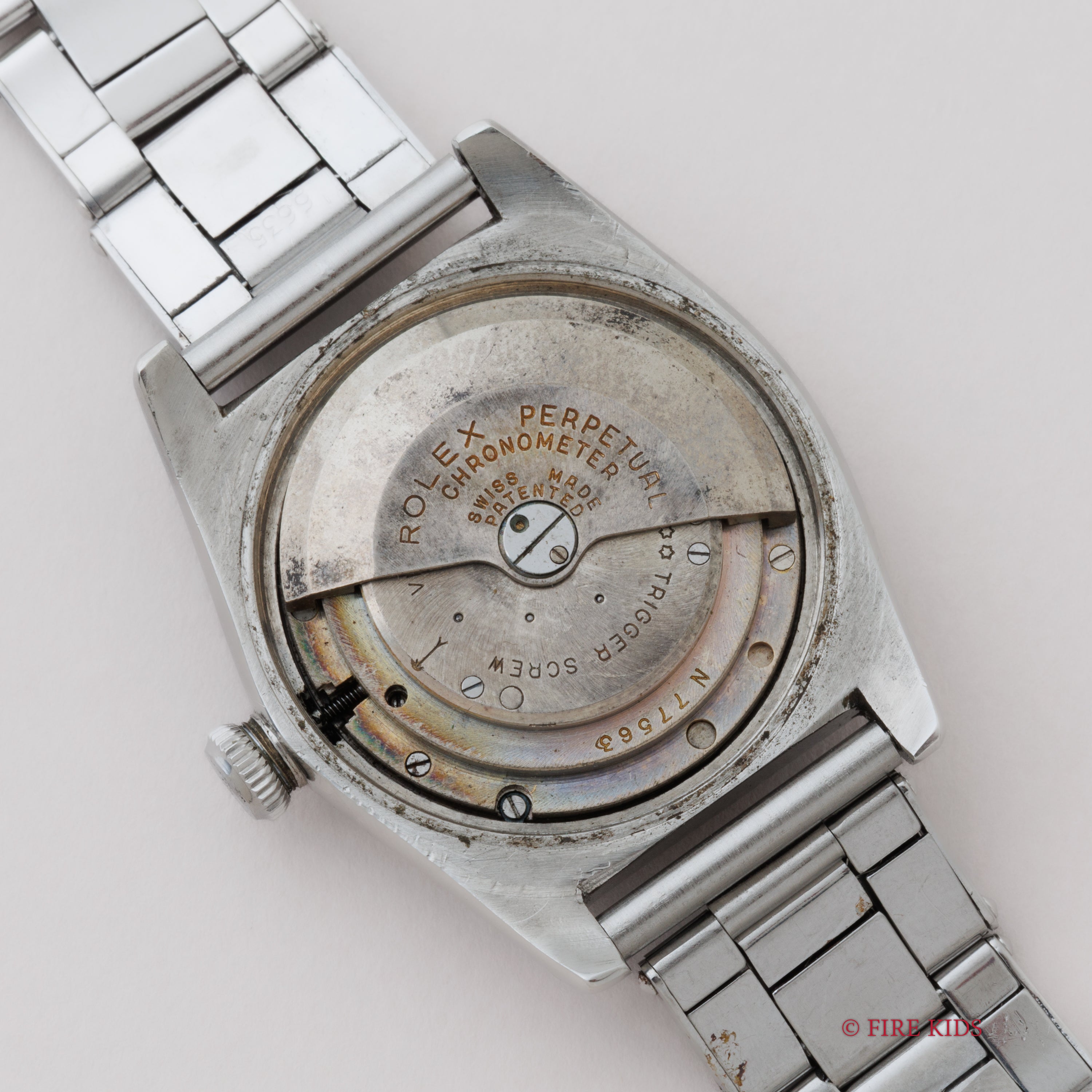 - ヴィンテージ時計の特性上、風防・パッキン・リューズ・バネ棒などの消耗部品は後年メンテナンス過程で交換されている場合がございます。オリジナル性を重視しておりますが、必要に応じて適切な部品にて調整されていますので、よりコレクション性重視のお求めのお客様は事前にご確認ください。