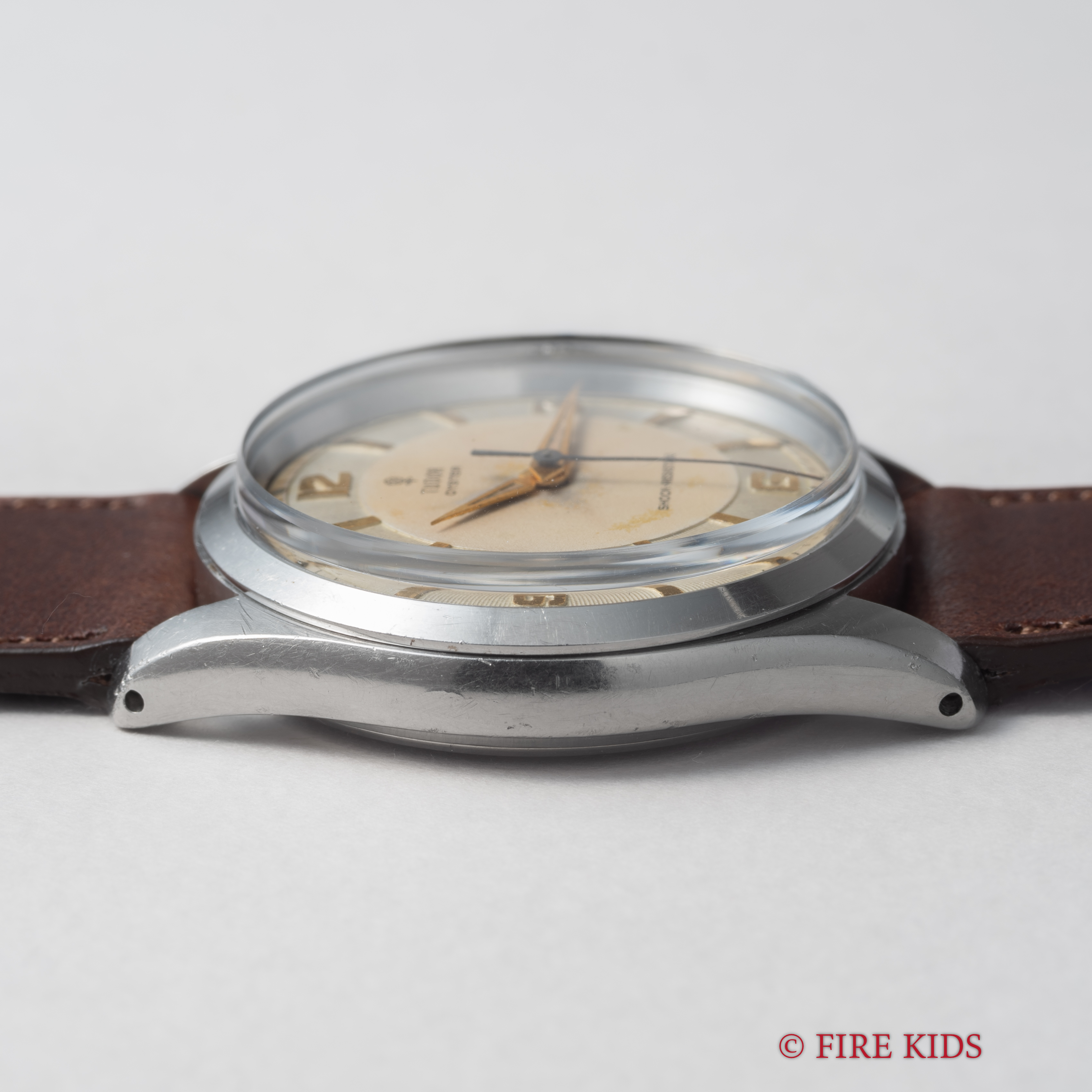 - ヴィンテージ時計の特性上、風防・パッキン・リューズ・バネ棒などの消耗部品は後年メンテナンス過程で交換されている場合がございます。オリジナル性を重視しておりますが、必要に応じて適切な部品にて調整されていますので、よりコレクション性重視のお求めのお客様は事前にご確認ください。