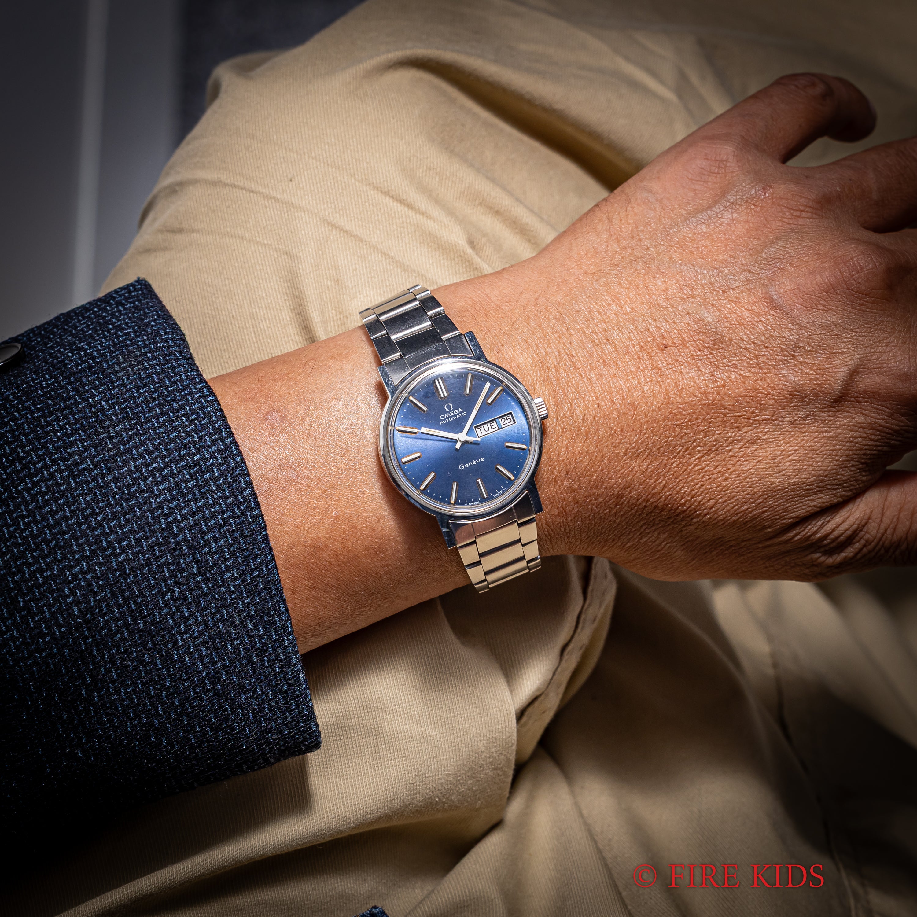 オメガ ジュネーブ 1973年製 ブルーダイヤル 純正ブレス付き Ref.166.0117 自動巻 デイデイト