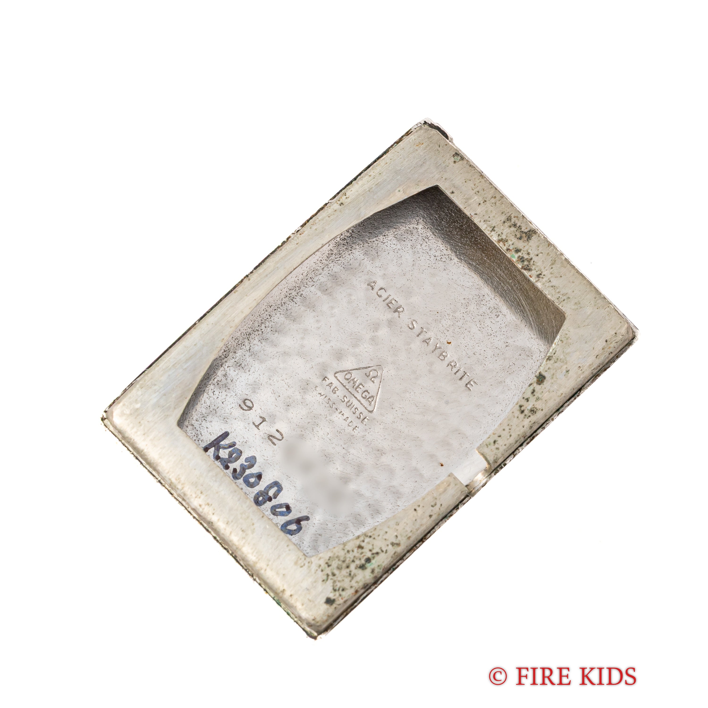 この年代では大振りな幅約22㎜(リューズ別)のサイズでカッパーダイヤル、スモールセコンド、ブルースチール針とヴィンテージの魅力が詰まっています。ムーブメントはオメガの角型の代表作Cal.T17を搭載しています。ケースはステイブライト製で小傷は見られますが大きなダメージはありません。リューズは後年の純正に交換されています。手巻きや針回しの操作はスムースです。ベルトはヴィンテージと相性の良いアキュレイトフォルムが取り付けられています。純正の尾錠が付属しますがベルト別作が必要となります。