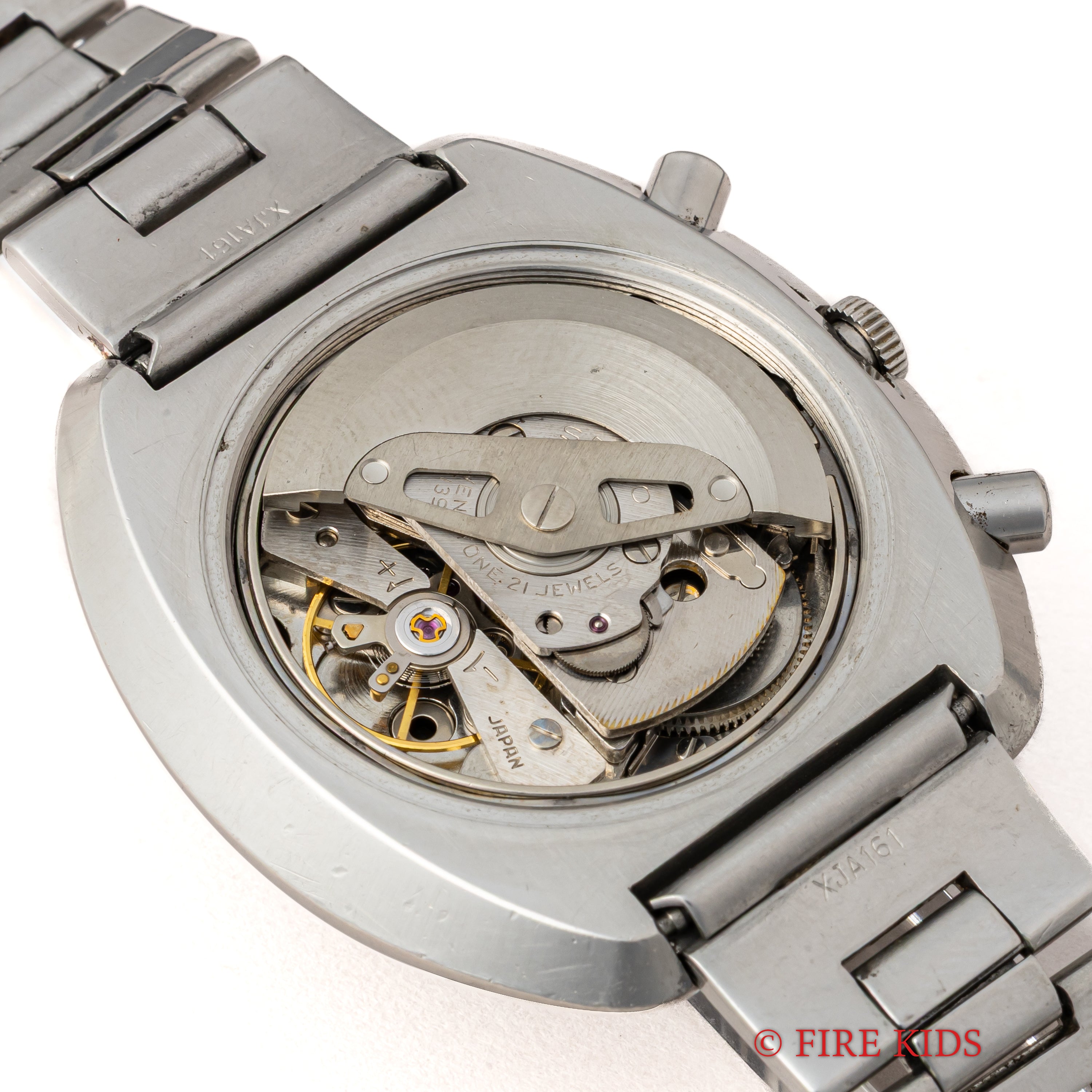 - ヴィンテージ時計の特性上、風防・パッキン・リューズ・バネ棒などの消耗部品は後年メンテナンス過程で交換されている場合がございます。オリジナル性を重視しておりますが、必要に応じて適切な部品にて調整されていますので、よりコレクション性重視のお求めのお客様は事前にご確認ください。