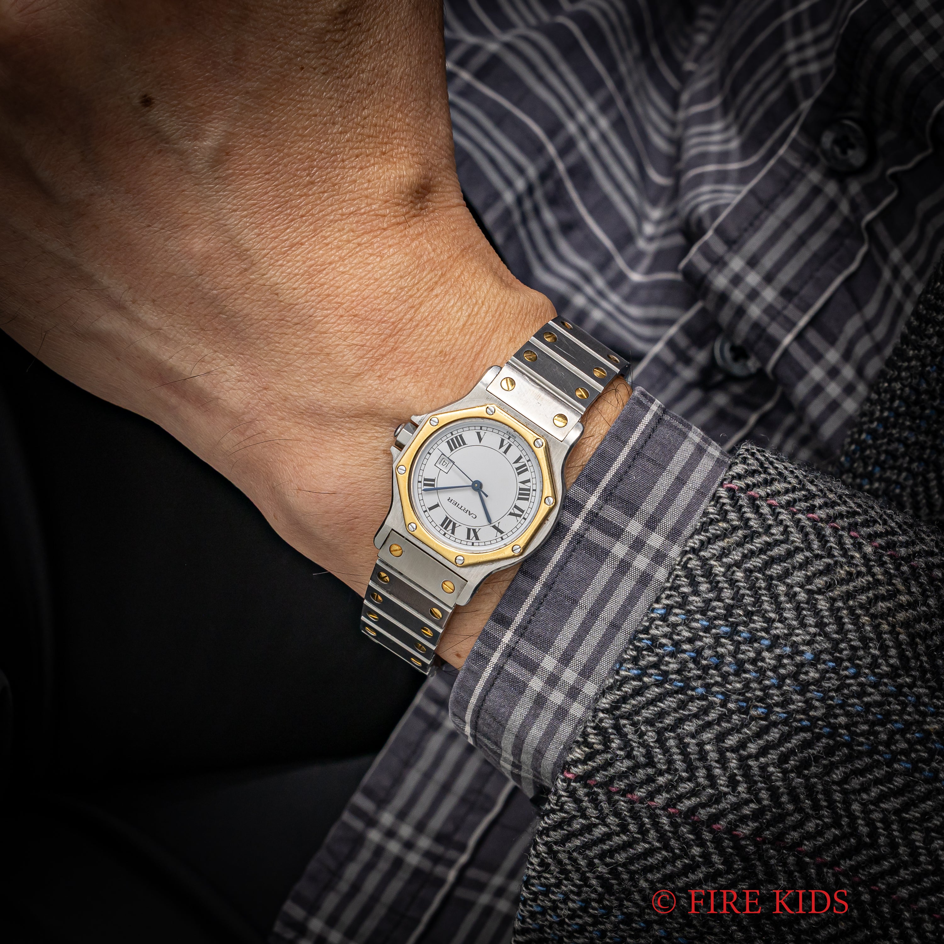 カルティエ サントスオクタゴン LMサイズ 1980年代製 コンビ 純正ブレス