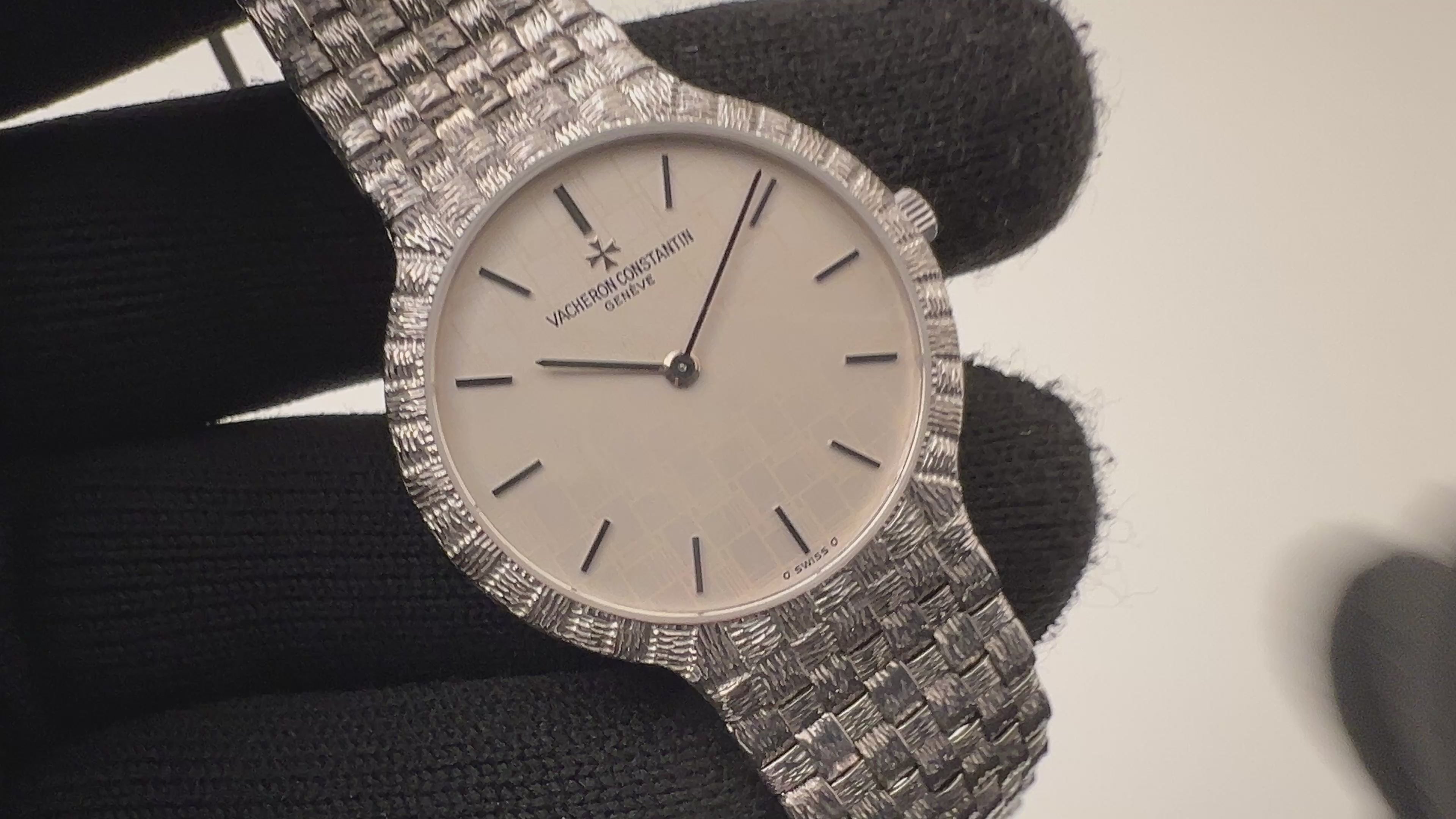 ヴァシュロン・コンスタンタン 1980年代製 18KWG メッシュドール Ref.31046 シグマダイヤル Cal.1132-2 が入荷しました。バーク仕上げが施された18KWGのケースとブレス一体型のモデルで、薄型手巻き2針の装着感に優れた華やかなモデルです。ダイヤルやケース、ブレスに大きなダメージは無く良好なコンディションです。手巻きや針回しはスムーズです。
