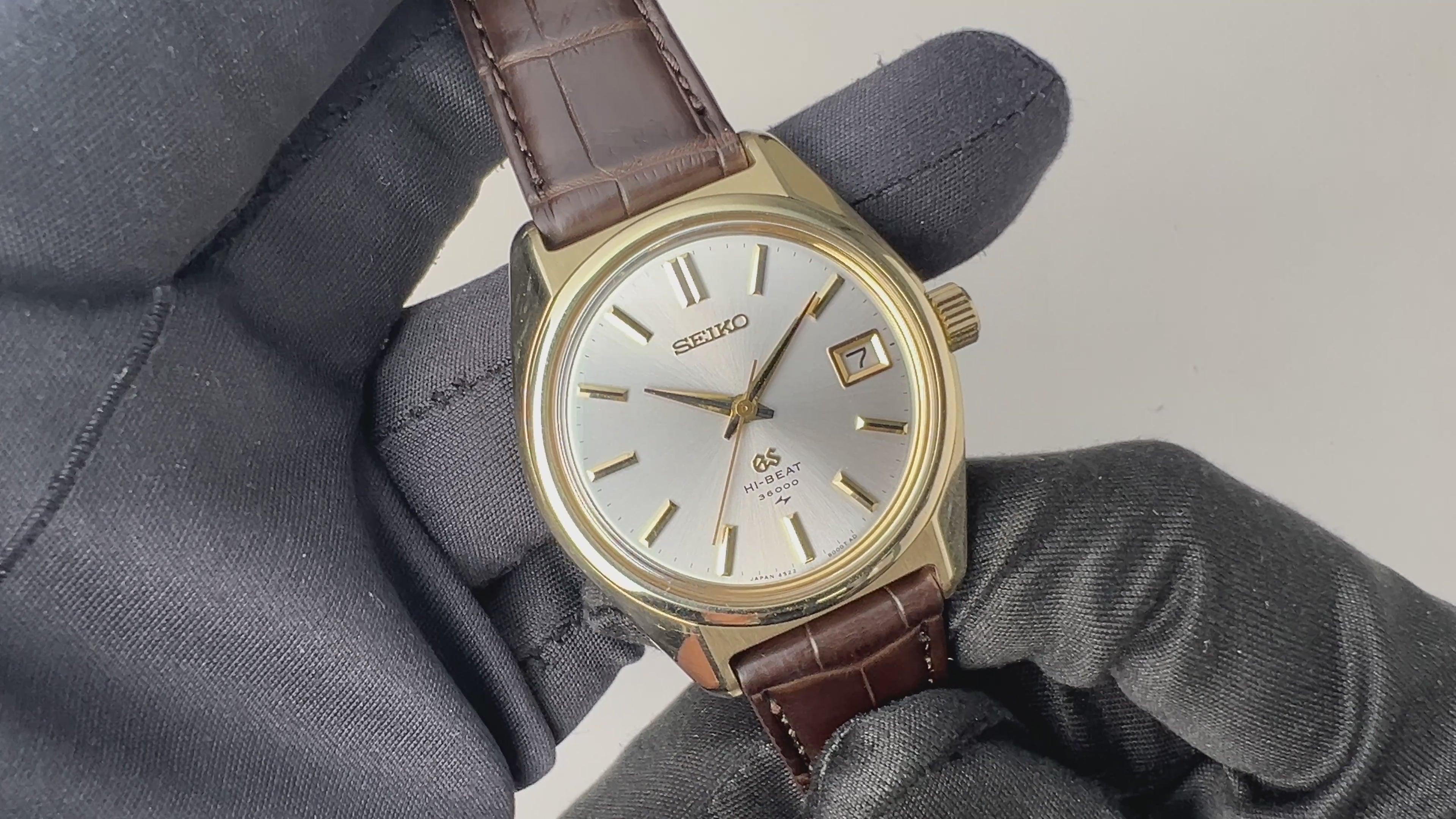グランドセイコー ハイビート 36000 1969年製 Ref.4522-8000 CAPゴールドケース 45GSの入荷になります。セイコースタイルと呼ばれる独自のケースデザインも魅力的なモデルで、それまで海外の高級時計を意識したデザインから独自のデザインに変わった年代です。文字盤はシミ等無く綺麗です。CAP GOLDのケースは小傷はございますが大きなダメージはございません。ムーブメントは手巻き36000振動の4522Aを搭載、裏ブタのメダリオンもしっかり残っています。手巻きや針回しの操作はスムーズです。ベルトはファイアーキッズオリジナルのクロコダイルを合わせています。