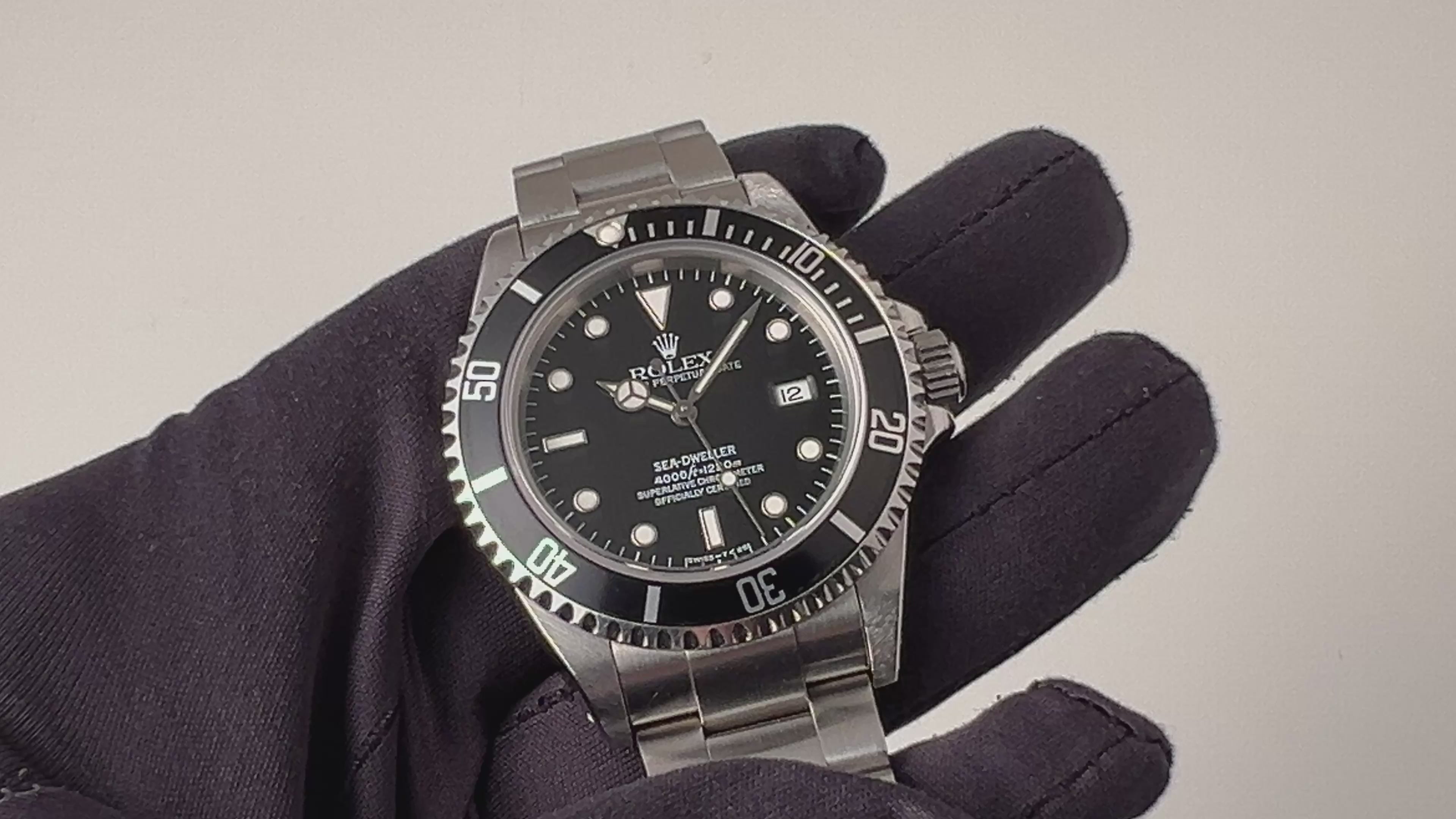 ロレックス シードゥエラー 1996年製 Ref.16600 トリチウム夜光です。サブマリーナとは違ったダイバーズをお探しの方におすすめです。飽和潜水にも対応可能なヘリウムエスケープバルブを装備した特殊モデルとして発売され、ケースも肉厚で屈強な印象です。肉眼でもほんのりと夜光の灼けが確認出来ます。ムーブメントはCal.3135を搭載、手巻きと針回しはスムーズです。ブレスは純正専用ブレス(93160)を取り付けてあります。箱、ギャランティー付きです。