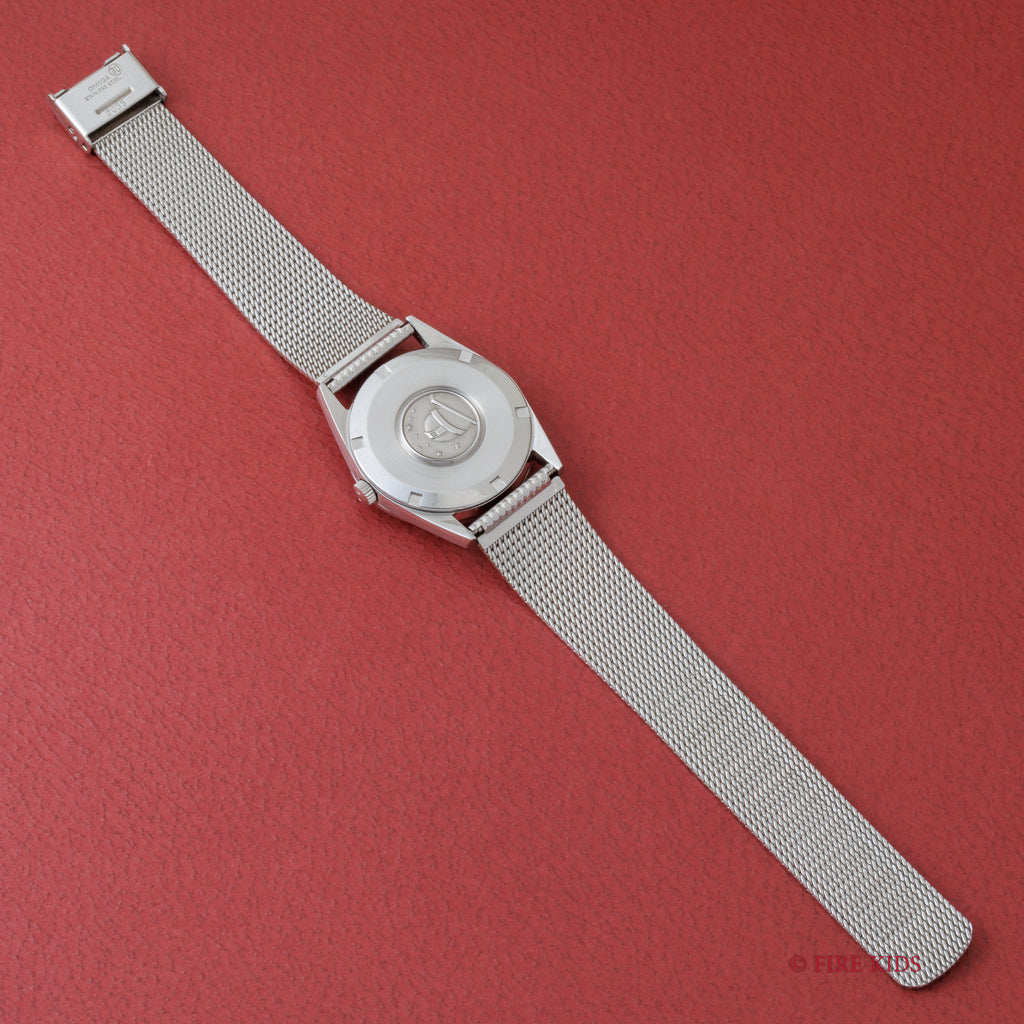 • ヴィンテージ時計の特性上、風防・パッキン・リューズ・バネ棒などの消耗部品は後年メンテナンス過程で交換されている場合がございます。オリジナル性を重視しておりますが、必要に応じて適切な部品にて調整されていますので、よりコレクション性重視のお求めのお客様は事前にご確認ください。