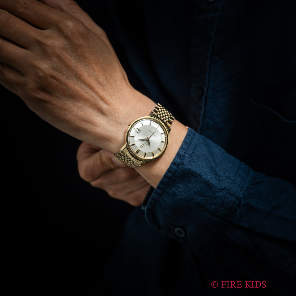 • ヴィンテージ時計の特性上、風防・パッキン・リューズ・バネ棒などの消耗部品は後年メンテナンス過程で交換されている場合がございます。オリジナル性を重視しておりますが、必要に応じて適切な部品にて調整されていますので、よりコレクション性重視のお求めのお客様は事前にご確認ください。
