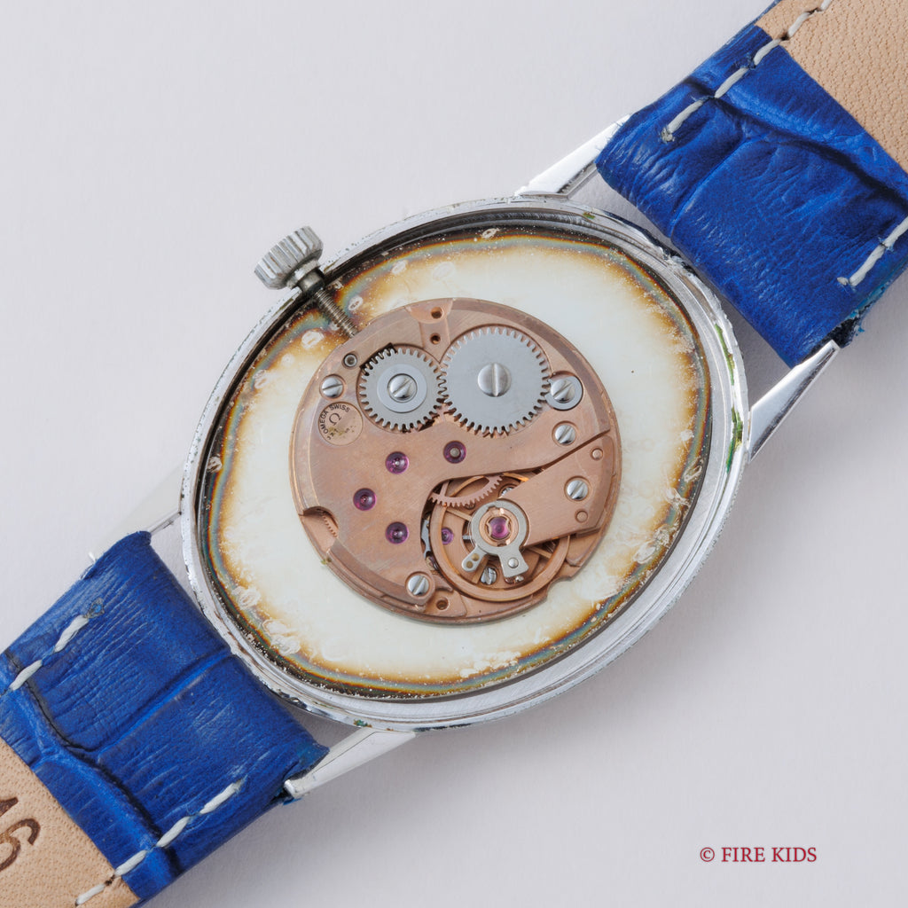 • ヴィンテージ時計の特性上、風防・パッキン・リューズ・バネ棒などの消耗部品は後年メンテナンス過程で交換されている場合がございます。オリジナル性を重視しておりますが、必要に応じて適切な部品にて調整されていますので、よりコレクション性重視のお求めのお客様は事前にご確認ください。