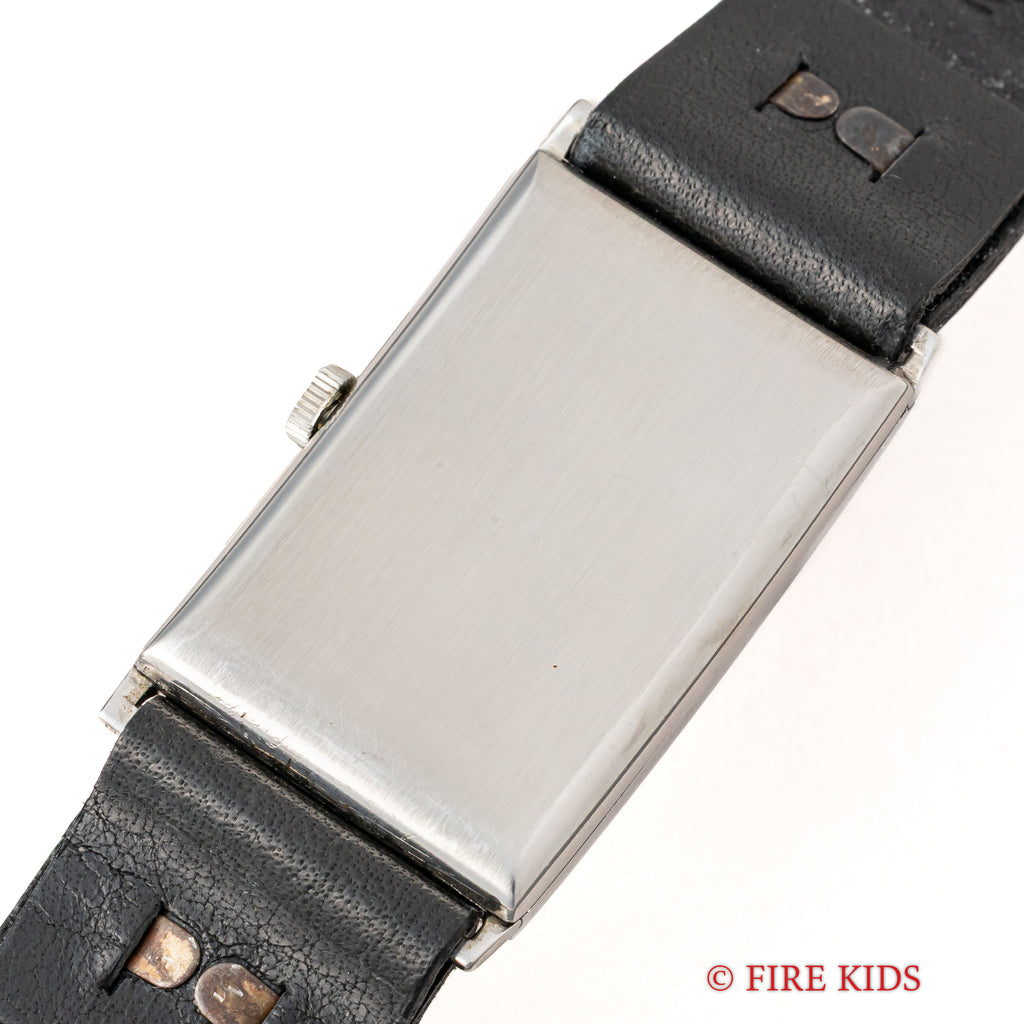 この年代では大振りな幅約22㎜(リューズ別)のサイズでカッパーダイヤル、スモールセコンド、ブルースチール針とヴィンテージの魅力が詰まっています。ムーブメントはオメガの角型の代表作Cal.T17を搭載しています。ケースはステイブライト製で小傷は見られますが大きなダメージはありません。リューズは後年の純正に交換されています。手巻きや針回しの操作はスムースです。ベルトはヴィンテージと相性の良いアキュレイトフォルムが取り付けられています。純正の尾錠が付属しますがベルト別作が必要となります。
