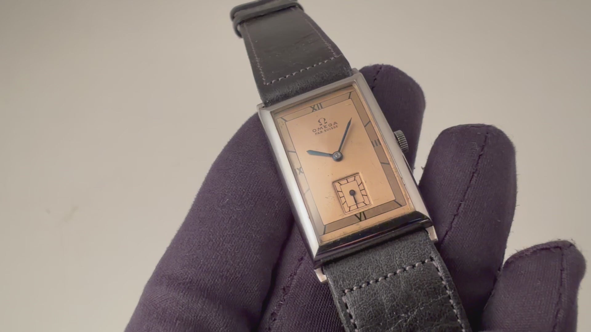 オメガ レクタンギュラーケース 飛びローマンカッパーダイヤル 1940年代製 手巻き Cal.T17