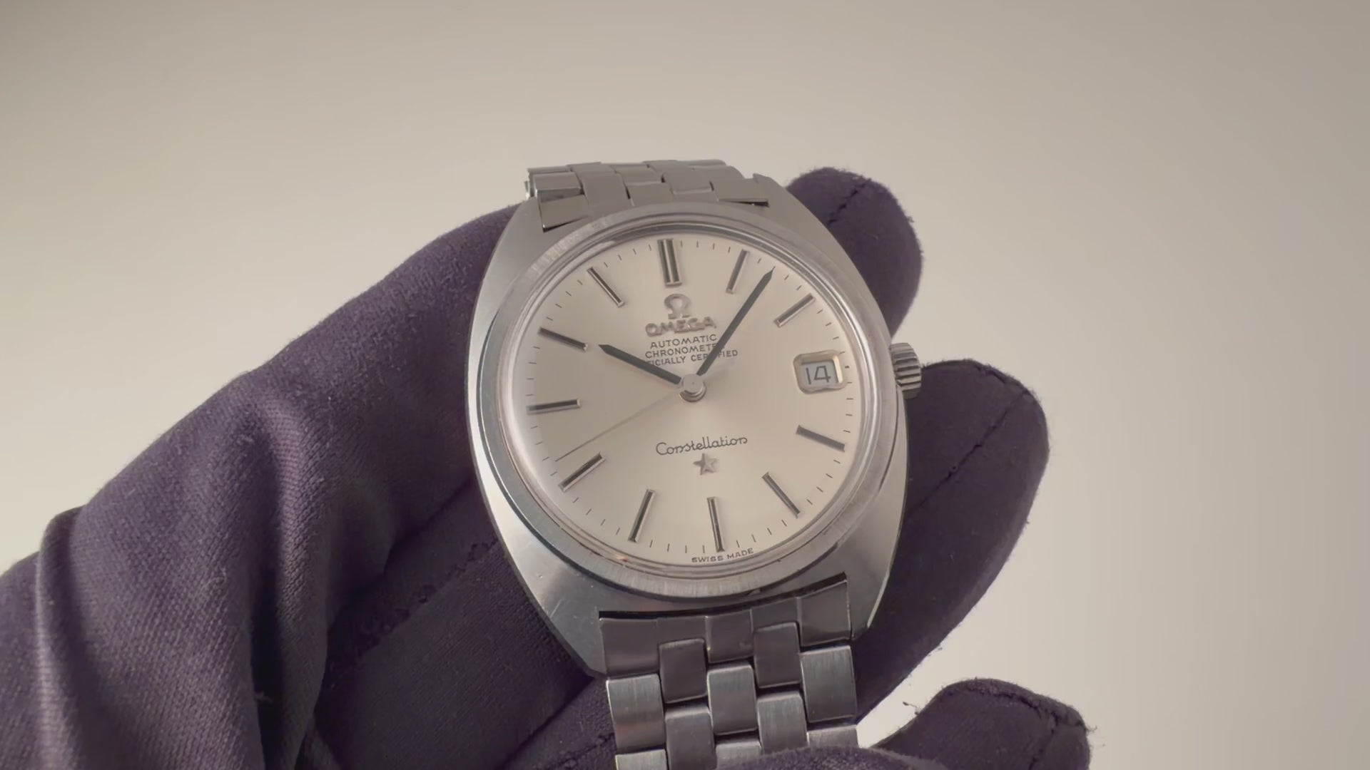 オメガ コンステレーション ジェンタデザイン前期型 1969年製 Ref.168.017 SP 純正ブレス付きの入荷になります。コンステレーションの中でも世界最高の時計デザイナーといわれるジェラルド・ジェンタがデザインをしたモデルです。ダイヤルとケース共に大きなダメージのない良好なコンディションです。ムーブメントはクロノメーターのCal.564を搭載。手巻きや針回し操作もスムースです。ベルトは純正の5連ステンレスブレスが取り付けられています。