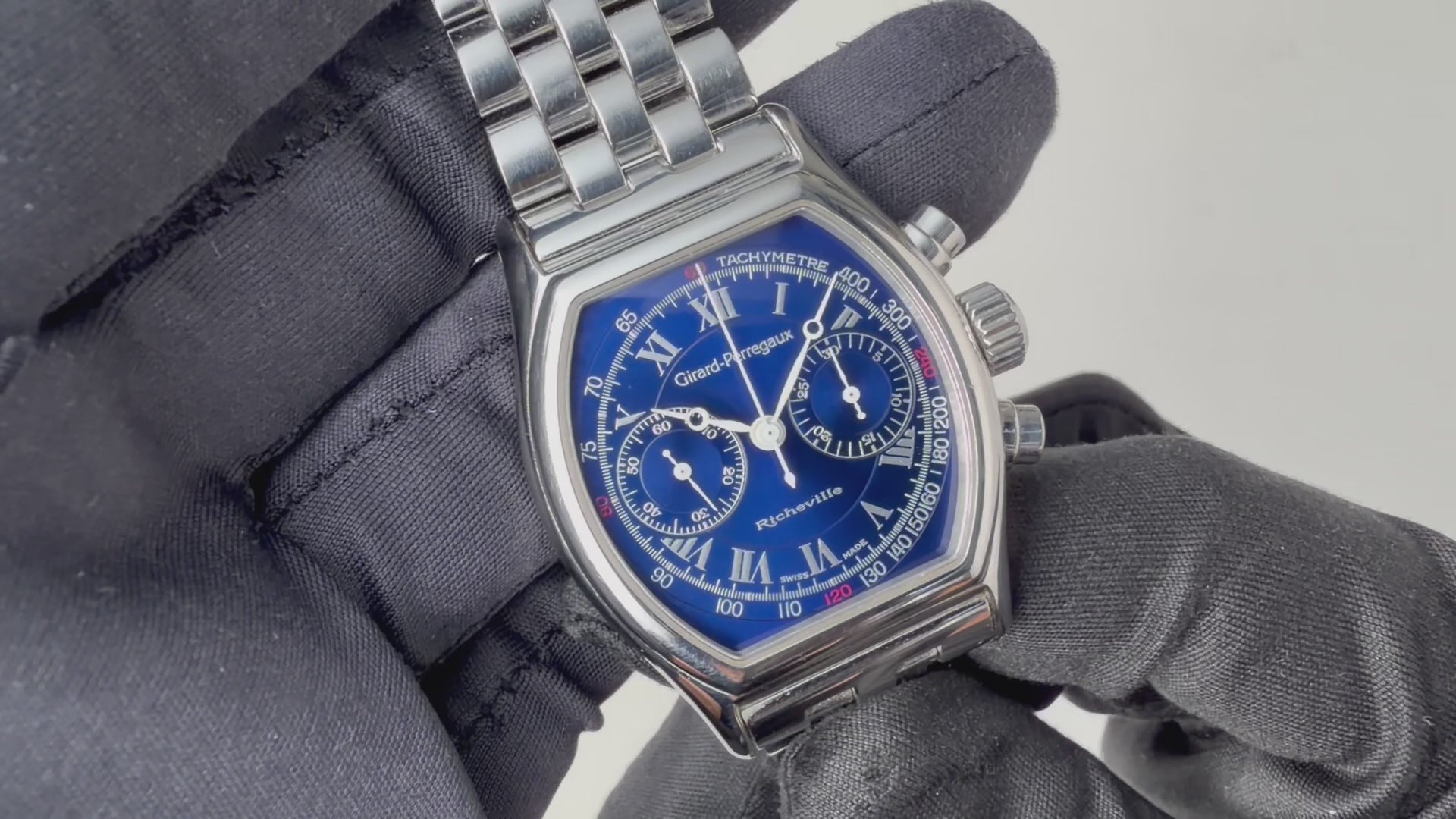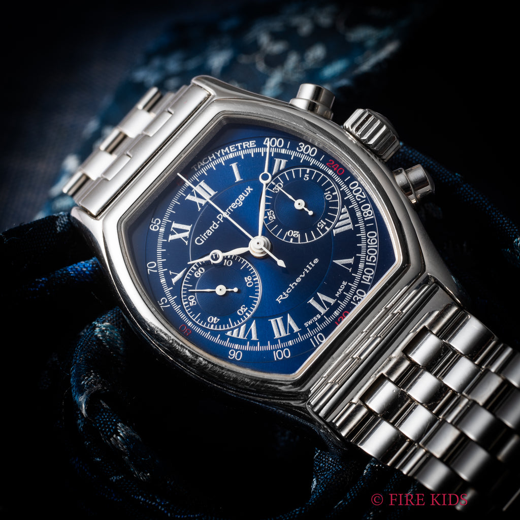 ジラール・ペルゴー リシュビル 1990年代製 Ref.2710 ブルーローマンダイヤル 手巻クロノグラフ 箱ギャラ、革ベルト尾錠付