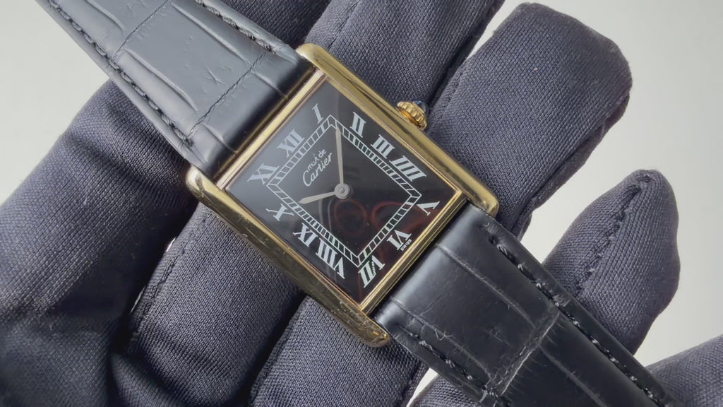 カルティエ マストタンク 1980年代製 LMサイズ ブラックローマンダイヤル 手巻 純正尾錠