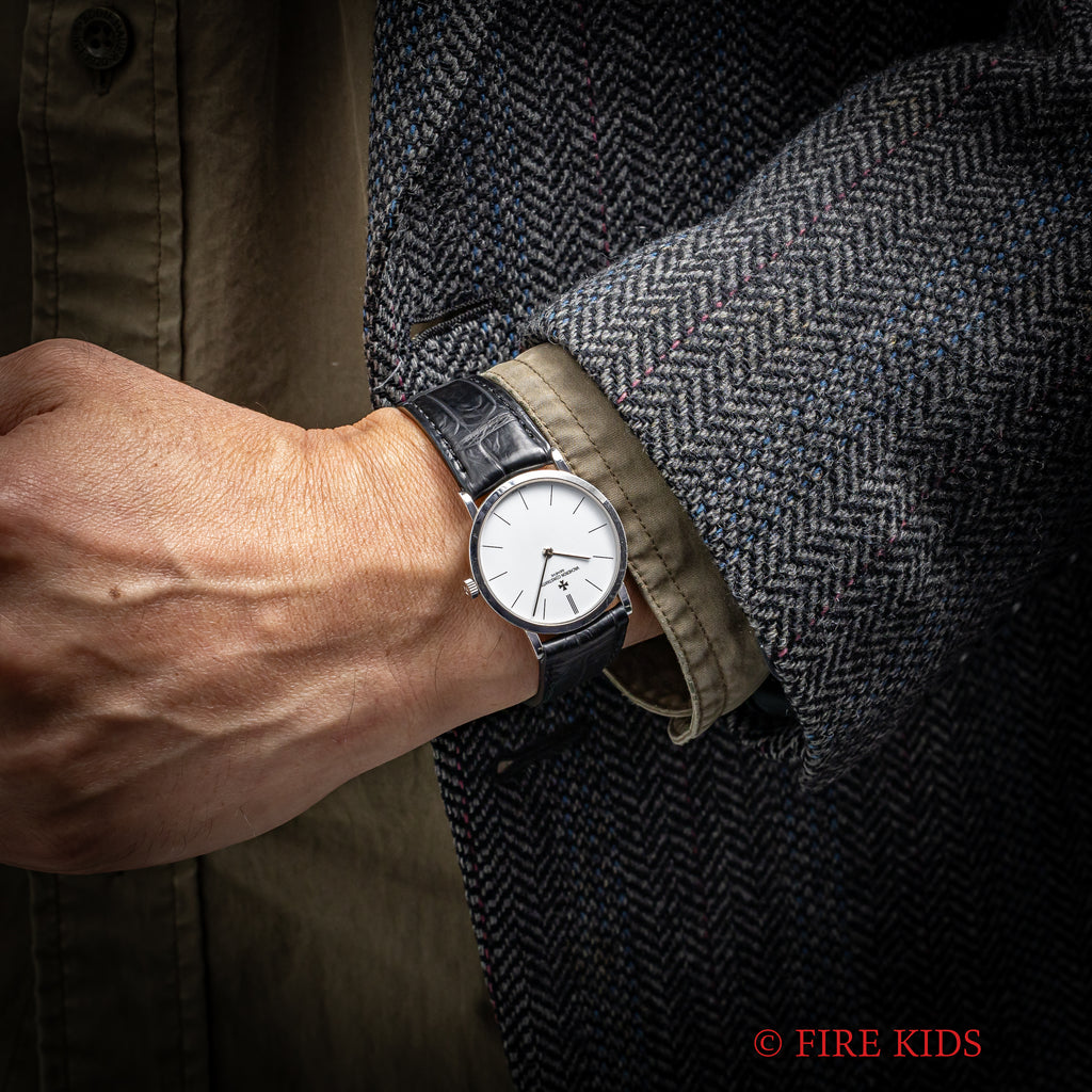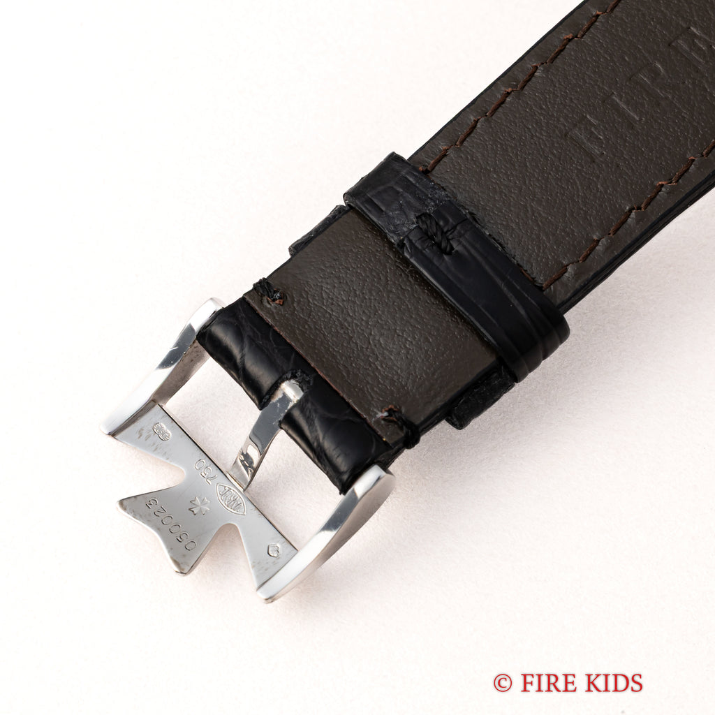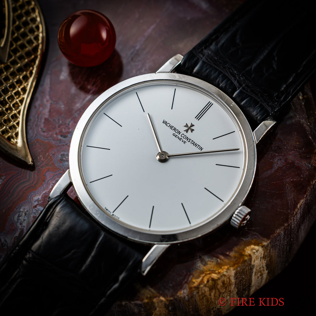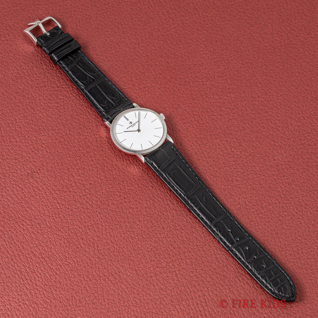 ヴァシュロン・コンスタンタン パトリモニー 1980年代製 Ref.33093 手巻 Cal.1003/2 18金無垢ホワイトゴールドの入荷になります。マルタ十字が光るホワイトダイヤルに二針、薄型ケースと正統派ドレスウォッチの一本です。ダイヤル、文字盤はシミ等無く綺麗です。ケースは小傷が見られますが大きなダメージはありません。機械は薄型高級機ジャガールクルトベースのCal.1003/2を搭載し、手巻きや針回しはスムーズです。ベルトはファイアーキッズオリジナルのクロコダイル革ベルトに純正の金無垢尾錠が取り付けられています