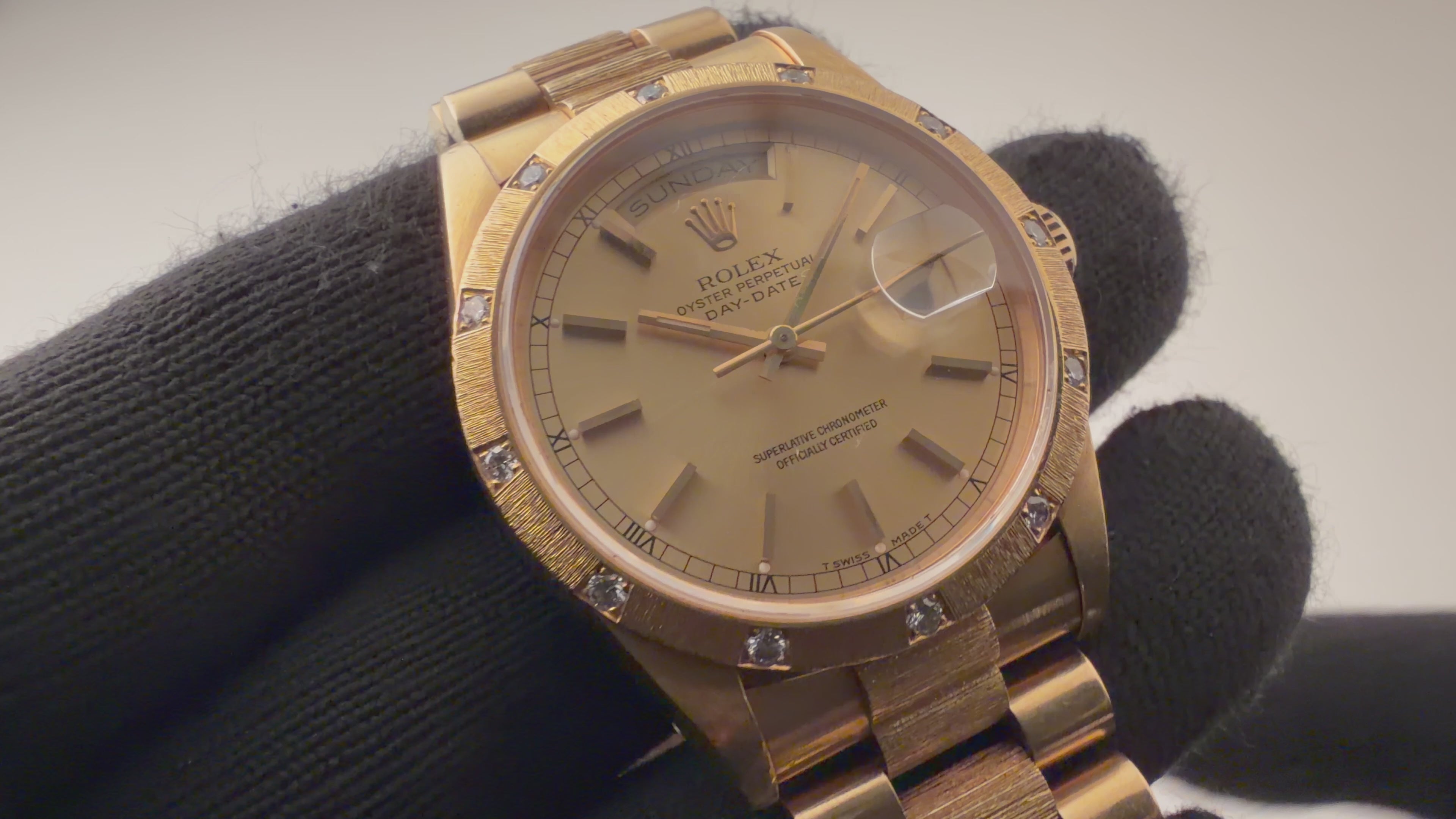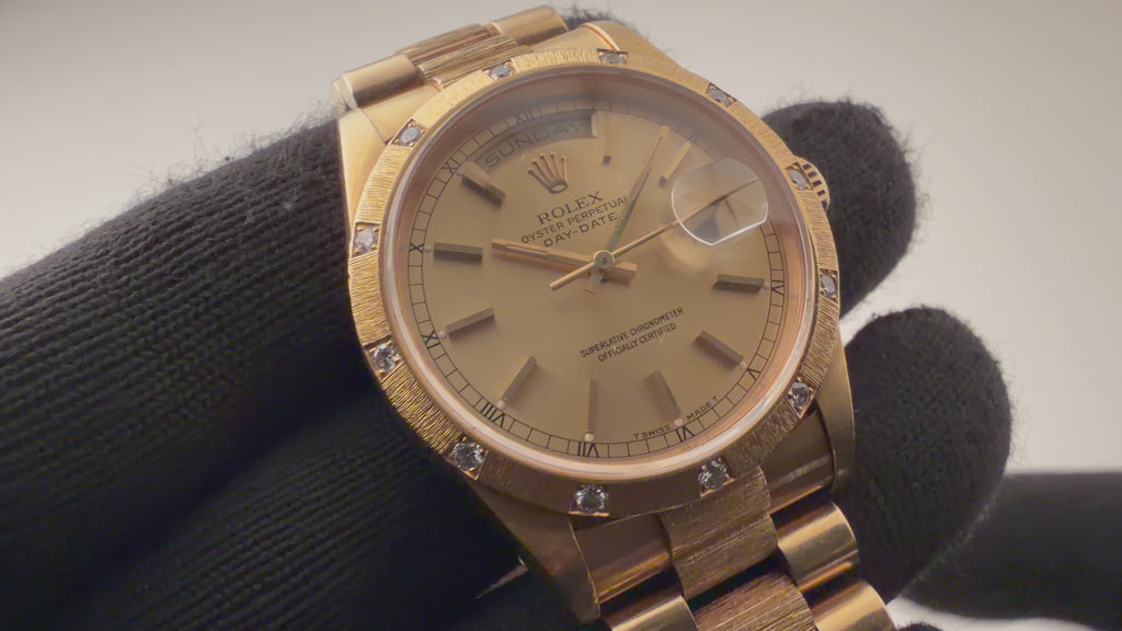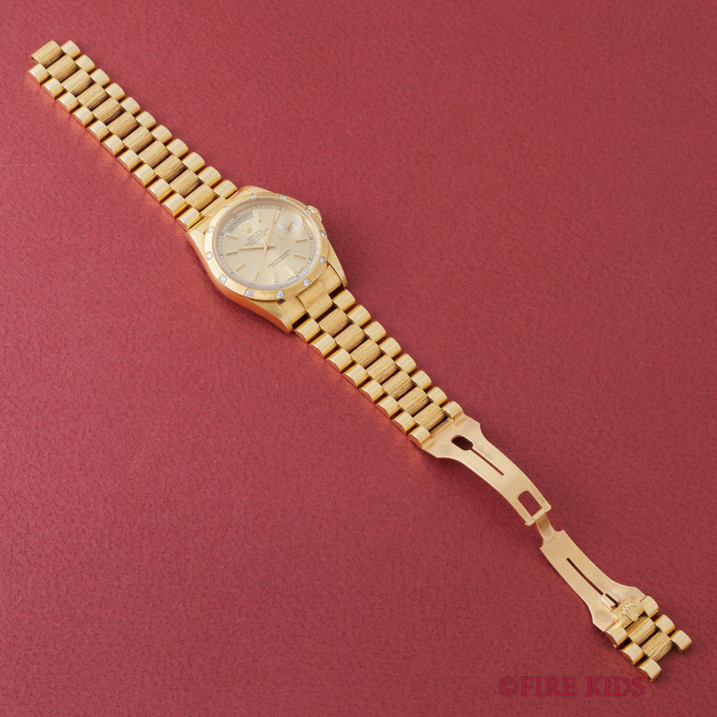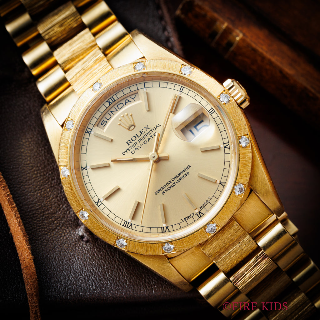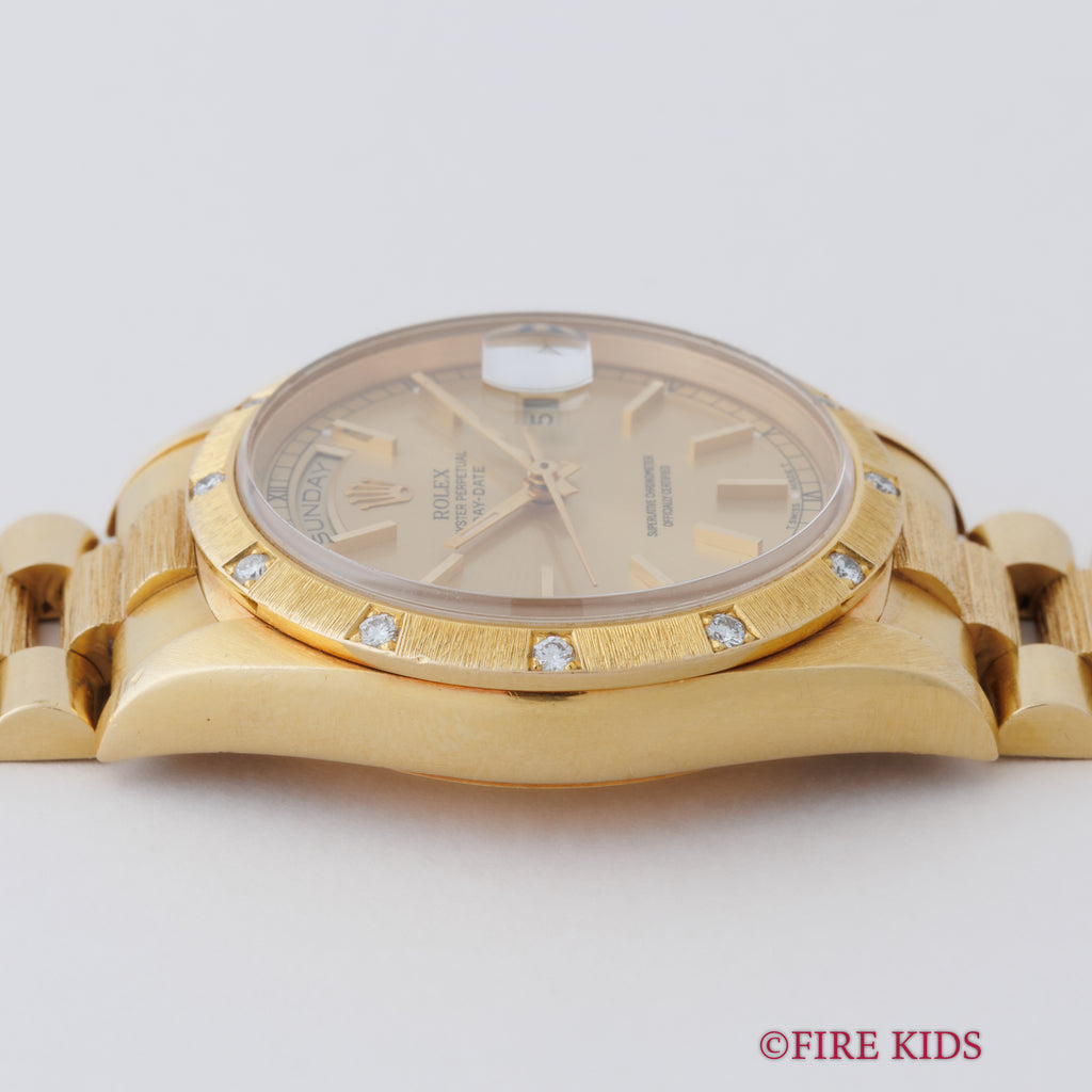 ロレックス デイデイトRef.18308 バークベゼル、ブレス 18金無垢 ベゼルダイヤ 1990~91年製