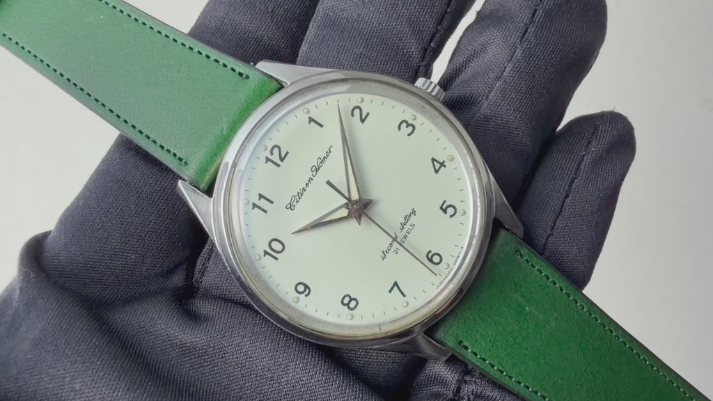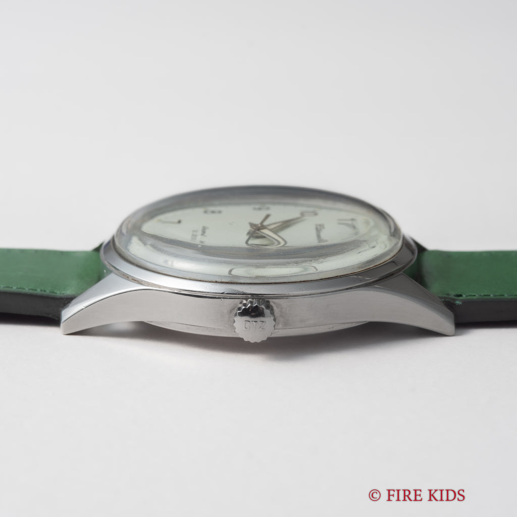 • ヴィンテージ時計の特性上、風防・パッキン・リューズ・バネ棒などの消耗部品は後年メンテナンス過程で交換されている場合がございます。オリジナル性を重視しておりますが、必要に応じて適切な部品にて調整されていますので、よりコレクション性重視のお求めのお客様は事前にご確認ください。