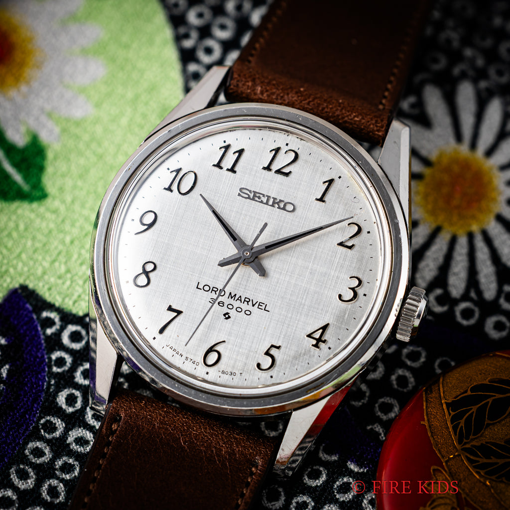 セイコー ロードマーベル 36000 1976年製 10振動手巻き ハイビートアラビアダイヤルの入荷になります。10振動のハイビート手巻ムーブメントを搭載した準高級機です。グランドセイコー、キングセイコーとはひと味違う国産腕時計の名作の一つではないでしょうか。ケースは小傷はございますが大きなダメージはございません。手巻きや針回しの操作はスムーズです。ベルトはファイアーキッズオリジナル、イタリアンレザーのブッテーロ(裏面ラバー)が取り付けられています。