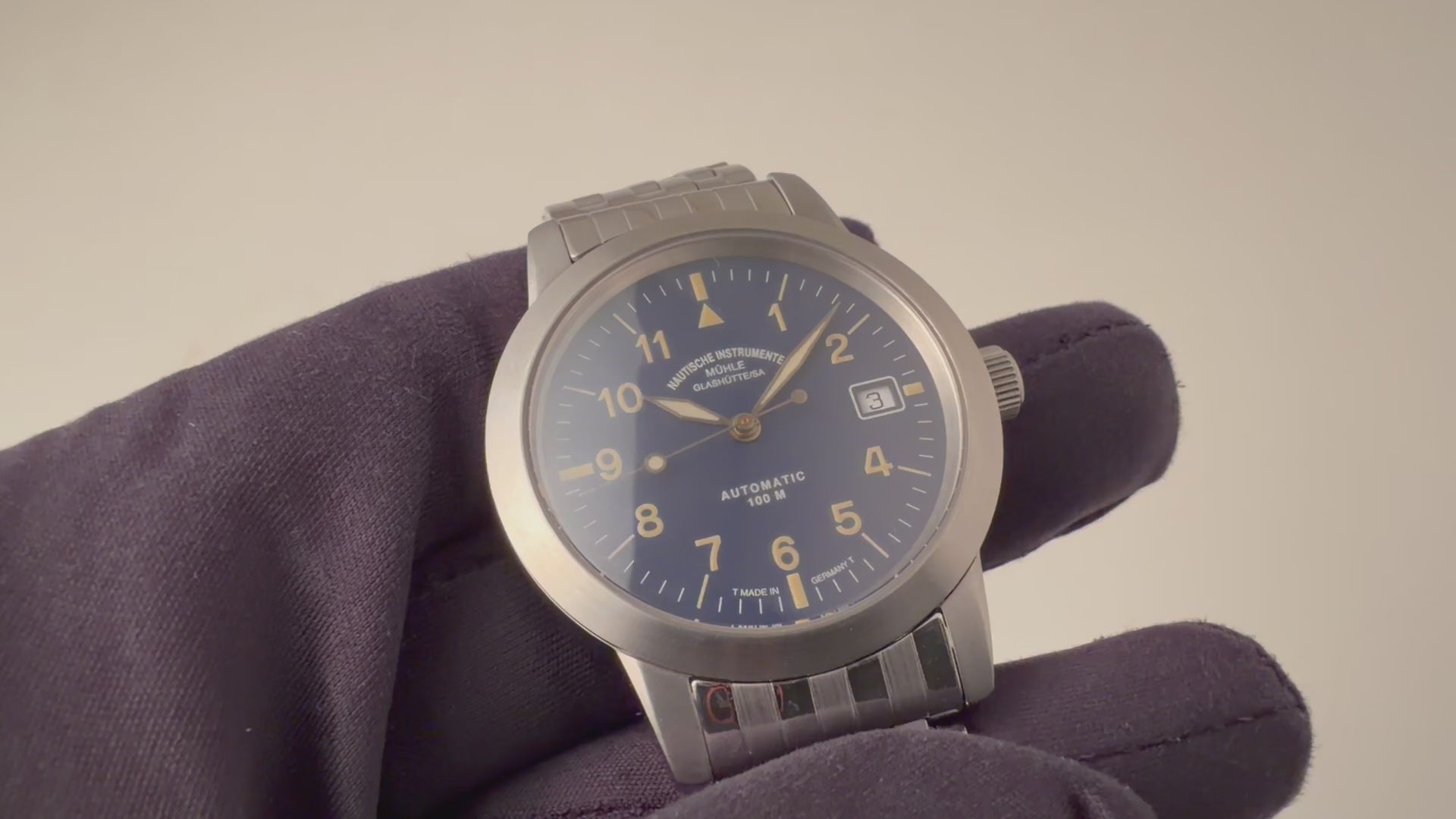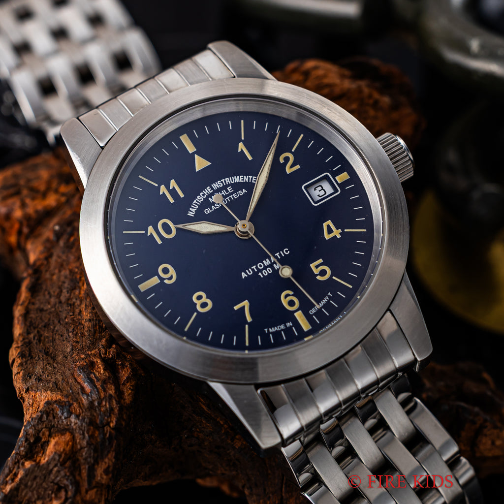 ミューレ・グラスヒュッテ 1990年代製 ブルーアラビアダイヤル 自動巻 ドイツ製 トリチウム夜光