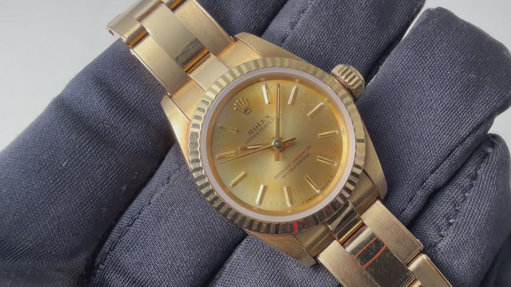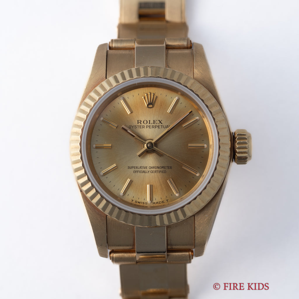 ロレックス 18金無垢オイスターパーペチュアル レディース 1991年製 Ref.67198 純正18金無垢ブレスレットノンデイト