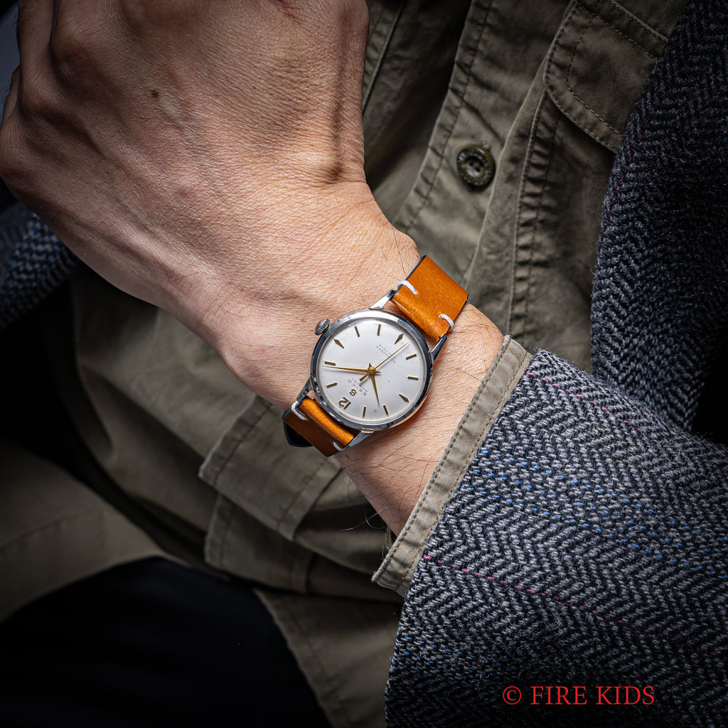 • ヴィンテージ時計の特性上、風防・パッキン・リューズ・バネ棒などの消耗部品は後年メンテナンス過程で交換されている場合がございます。オリジナル性を重視しておりますが、必要に応じて適切な部品にて調整されていますので、よりコレクション性重視のお求めのお客様は事前にご確認ください。