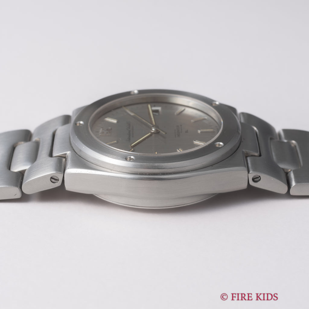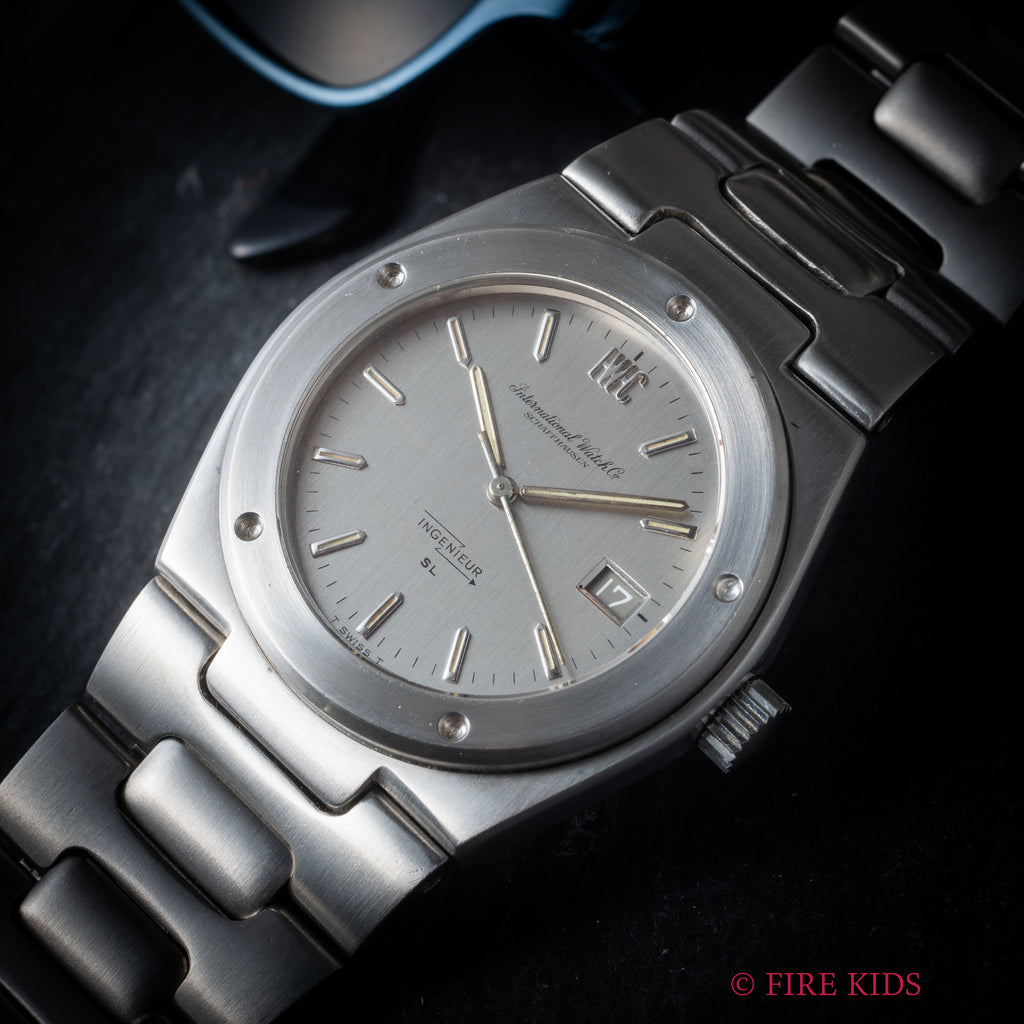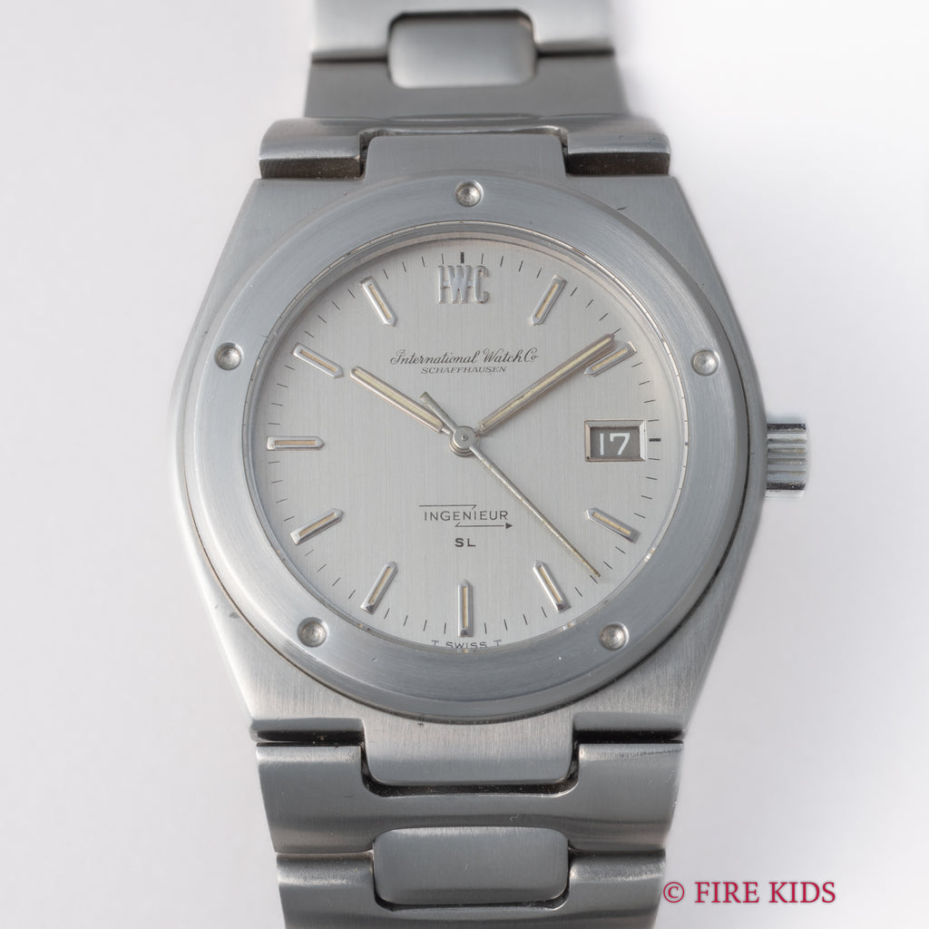 インターナショナルウォッチカンパニー IWC 1978年製 インヂュニアSL ジャンボ Ref.1832  ジェラルド・ジェンタ デザイン ペラトン式自動巻 Cal.8541Bの入荷になります。存在感抜群のケースから初期型のインヂュニアSLはジャンボの愛称で呼ばれています。リューズが交換されていますが良い雰囲気のヴィンテージです。ムーブメントはペラトン式自動巻の最終型Cal.8541Bを搭載しています。ベルトは純正のステンレスブレスが取り付けられています。