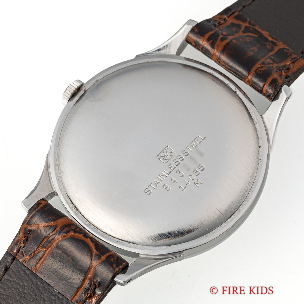 • ヴィンテージ時計の特性上、風防・パッキン・リューズ・バネ棒などの消耗部品は後年メンテナンス過程で交換されている場合がございます。オリジナル性を重視しておりますが、必要に応じて適切な部品にて調整されていますので、よりコレクション性重視のお求めのお客様は事前にご確認ください。