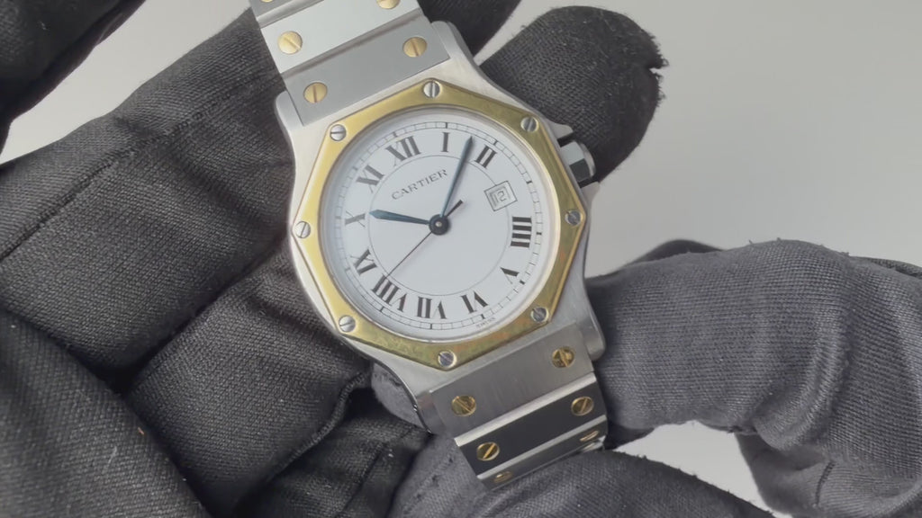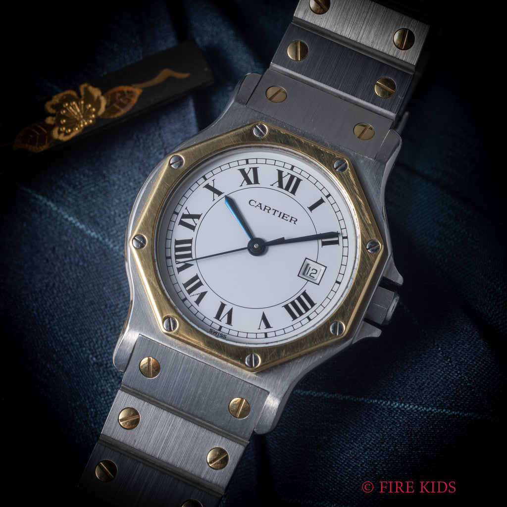 カルティエ サントスオクタゴン LMサイズ 1980年代製 自動巻 コンビ 純正ブレス