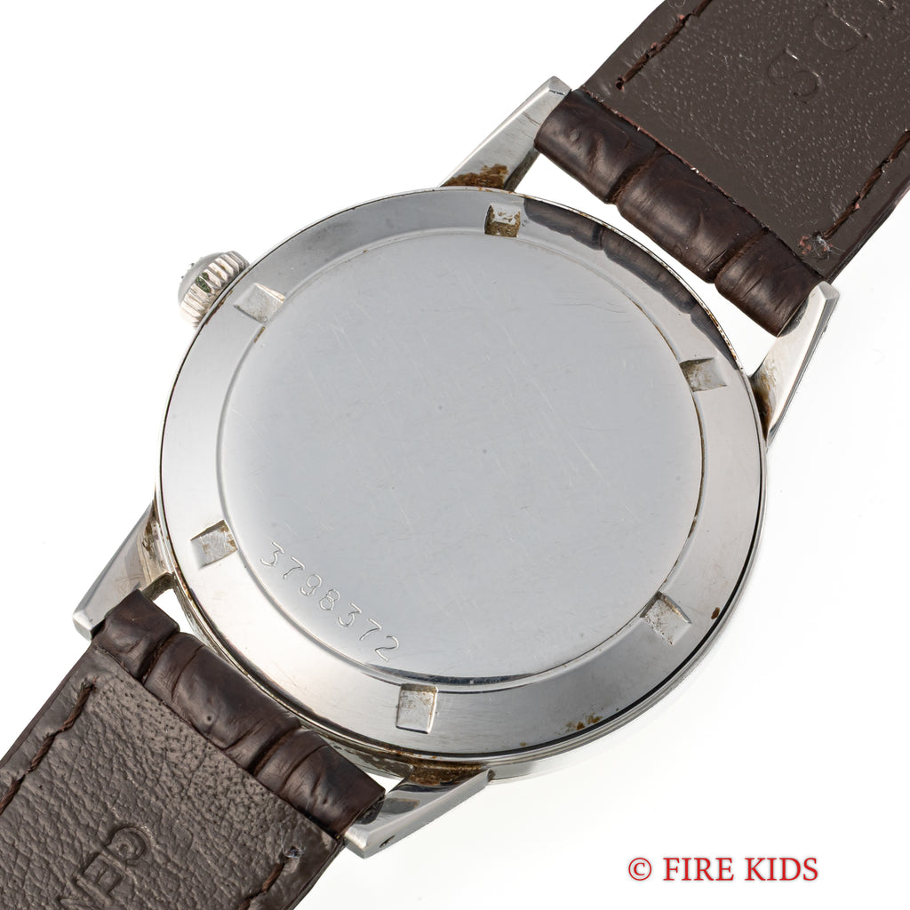 • ヴィンテージ時計の特性上、風防・パッキン・リューズ・バネ棒などの消耗部品は後年メンテナンス過程で交換されている場合がございます。オリジナル性を重視しておりますが、必要に応じて適切な部品にて調整されていますので、よりコレクション性重視のお求めのお客様は事前にご確認ください。