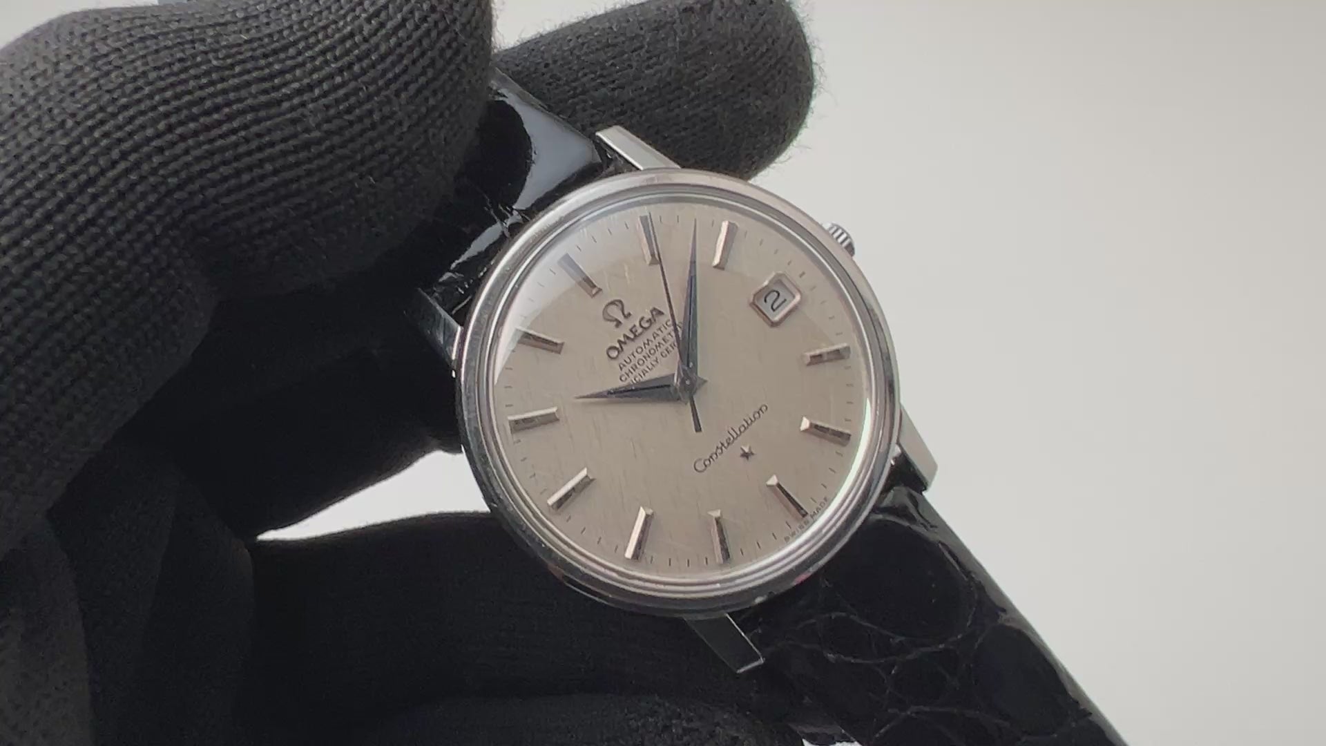 1968年製のオメガコンステレーションです。シンプルなラウンドケースにリネン調のダイヤルは飽きのこないシンプルなデザインです。存在感のある35mmサイズのケースは小傷は見られますが、ラグの面取りがしっかりと残っています。ムーブメントは2段引きでカレンダーの早送りができるCal.564を搭載しており、巻き上げはスムーズです。ベルトは社外のクロコダイル革ベルトを合わせています。こちらは分解掃除済みになります。