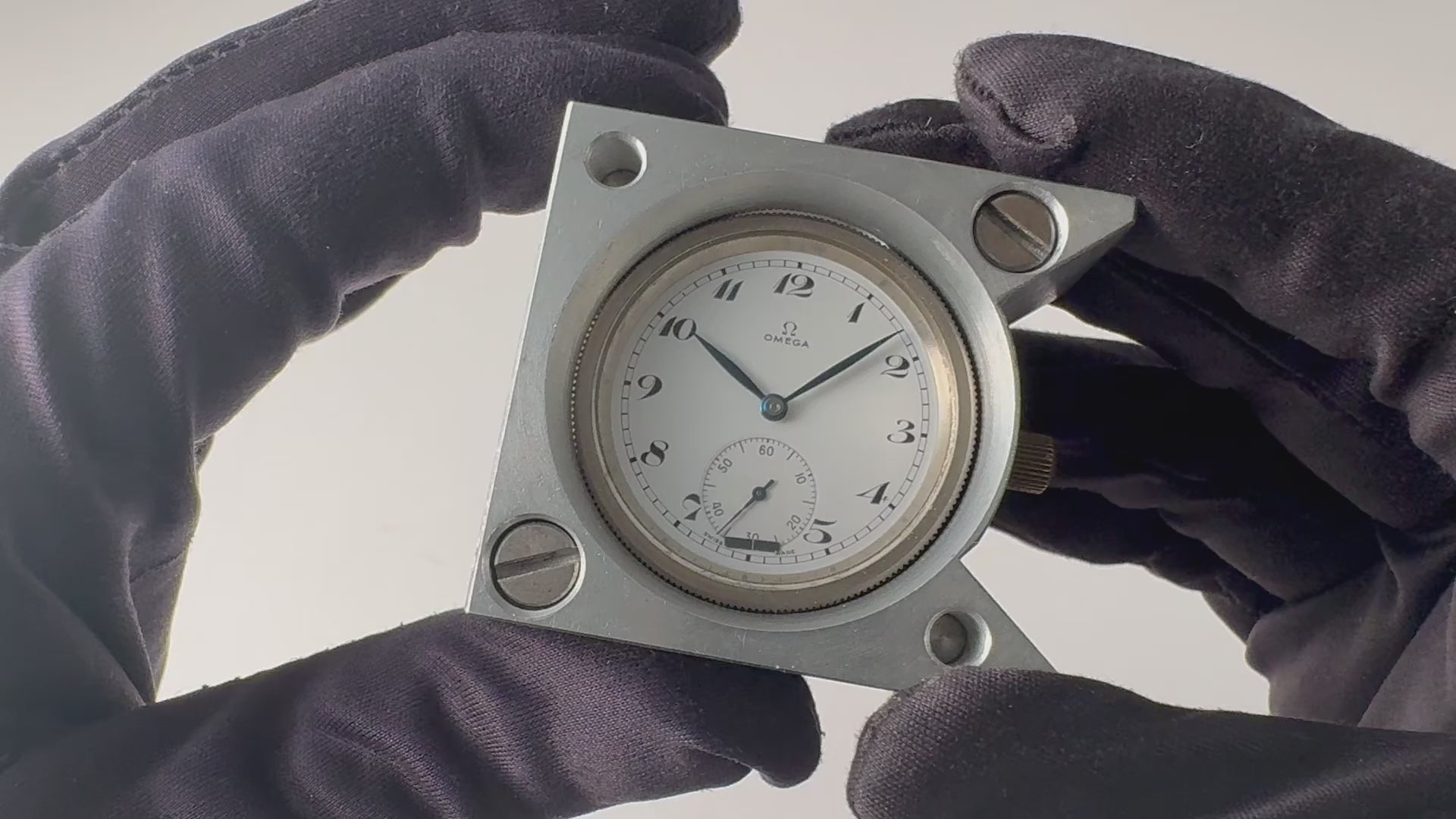 1952年に製造されたオメガ 天文台コンクール専用キャリバー30GDです。オメガがコンクール専用に製造したキャリバーで、当時のコンクールを総ナメにした名機です。ムーブメントシリアルで追うと1952年製ですが、記録として残っているのは1957年のコンクールでの入賞、コンクール最後の年である1967年に出品した記録が残っています。当時のオメガには調整を担っていた技術者が2人いましたが、2回ともジョセフ・オーリーが担当したと記録されています。ムーブメントの仕様は一見通常の30mmキャリバーよりも簡素ですが、外側からでは見えにくい細かな部分で、様々なチューンナップが施されています。振動数も通常の18,000振動から25,200振動に変更され、それに伴いガンギやアンクルも通常より入念に仕上げられています。簡素な仕上げの角穴、丸穴車も歯の側面はしっかりポリッシュされ、実用的な部分のみの仕上げがコンクールムーブメントらしさを感じます。調速機もコンクール仕様にされており、テンワはより繊細な温度補正を可能にするギョームテンプ、天真用の穴石はあえてショックアブソーバーを付けず、石を固定するプレートは幅広でしっかりと石を保持できるようにしています。過去のメンテナンスで付いたと思われる小傷はありますが、サビなどはなく良好なコンディションです。ブレゲ数字のポーセリンダイヤルは、スモセコに肉眼では見えない程度の僅かなクラックはありますが、概ね綺麗な状態です。現在稼働品ですが観賞用で動作保証はありませんのでご了承下さい。