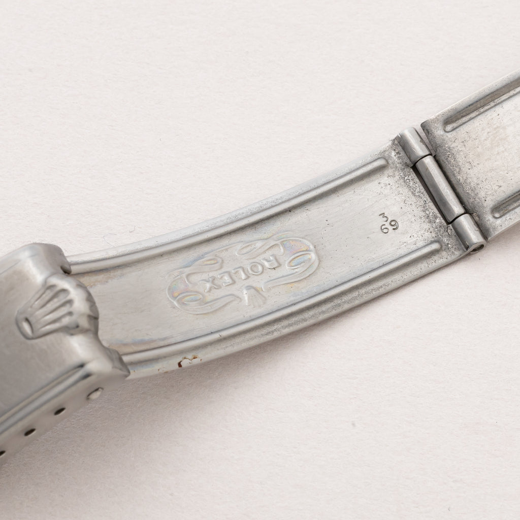 1961年製のロレックスオイスターデイトRef.6694です。艶のあるブラックだった文字盤が経年によりマーブル模様にブラウンチェンジした魅了ある個体です。時代のみが作り出す文字盤の経年変化がヴィンテージならでは味わいがあります。こちらは夜光がない珍しい仕様です。リベットブレスがついてるのもオススメしやすい点です。ケースやブレスレットに多少の小傷はございます。手巻きや針の操作感はスムースです。