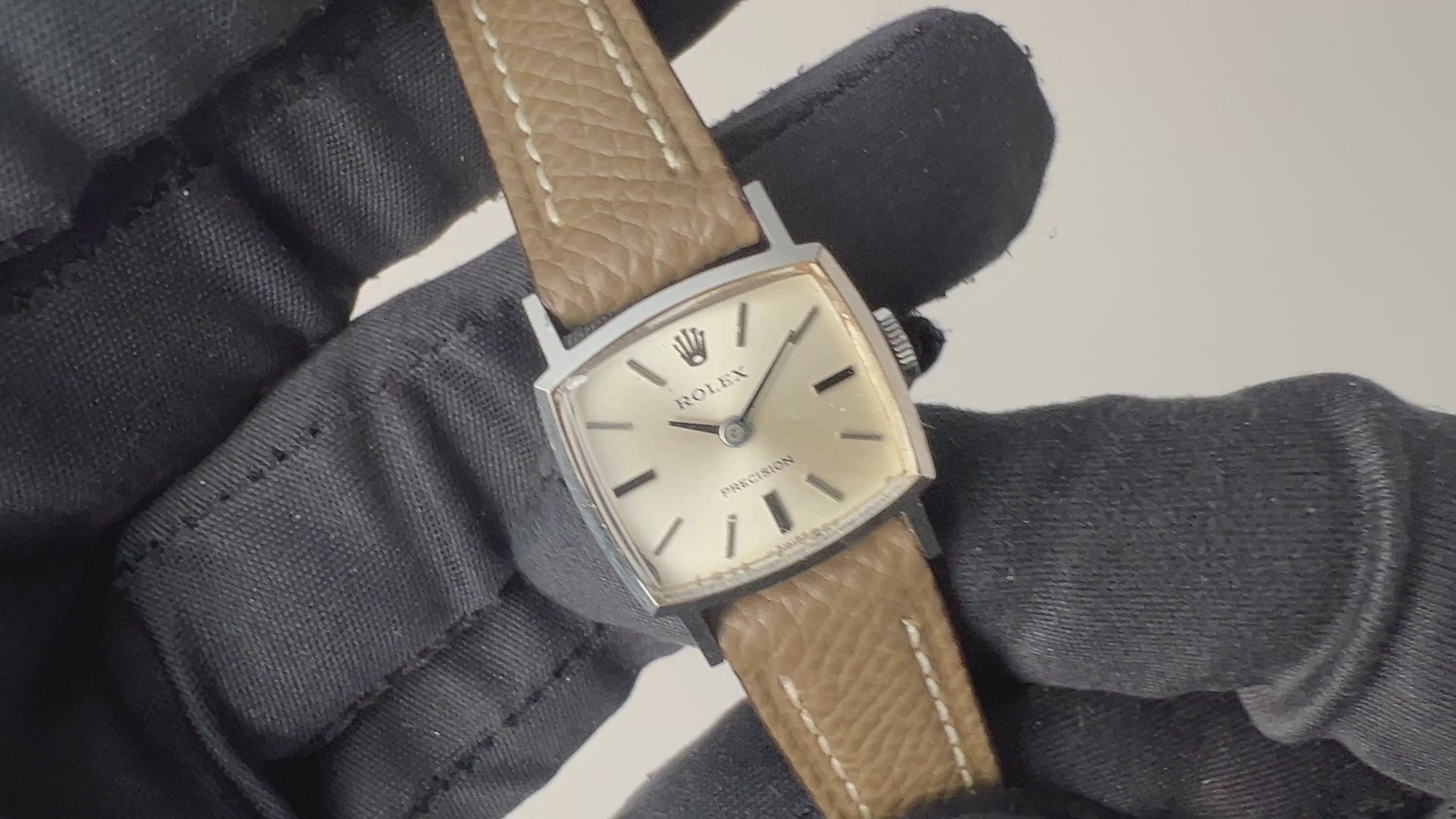 1973年製のロレックス レディース Ref.2652 スクエアモデルが入荷しました。ロレックスと言えばオイスターケースですが、こちらは異なる可愛らしいスクエア型のケースを採用した一本です。ノンデイト手巻き、二針とシンプルな構造で使い易いです。3,6,9時位置のインデックスは太さを変え、黒くペイントされ視認性にも一役買っています。ダイヤル、ケースともに年代なりの小傷や経年はありますが大きなダメージはありません。手巻きや針回しはスムーズです。ベルトは社外の革ベルトを合わせています。