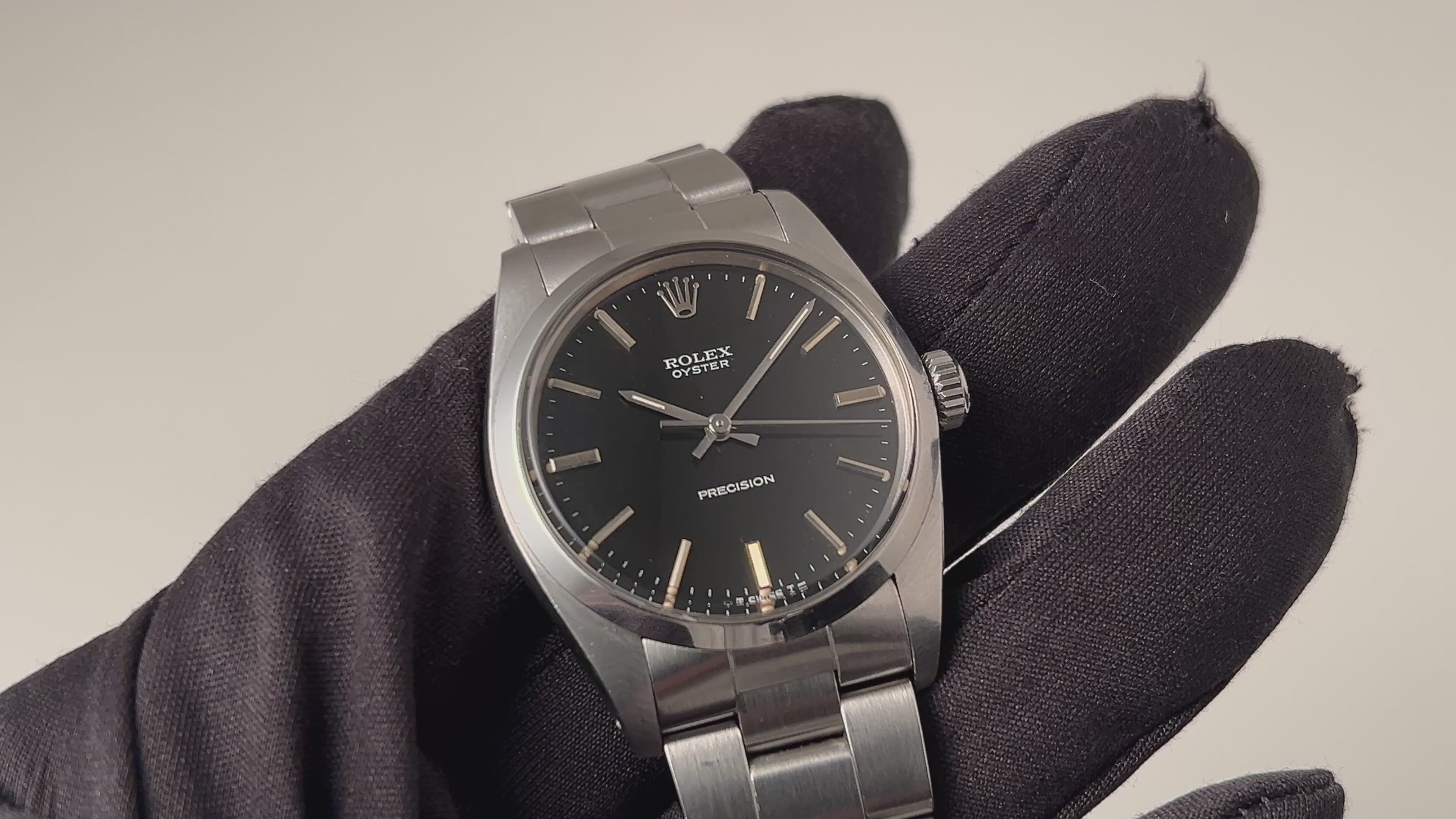 1987~88年製ロレックスのオイスター手巻きモデルになります。ロングセラーのRef.6426の中でもこちらの個体のように年式が後年のものは珍しいです。シンプルなノンデイトでサイズも34mmの使いやすいサイズ感です。艶のあるブラックダイヤルは、気になるダメージのない良好なコンディションです。ケースは小キズはありますが、痩せなどなく自然な状態です。ムーブメントは手巻きのCal.1225を搭載。手巻きや針回し、ねじ込みリューズの操作はスムースです。ベルトは純正のハードブレスが取り付けられています。