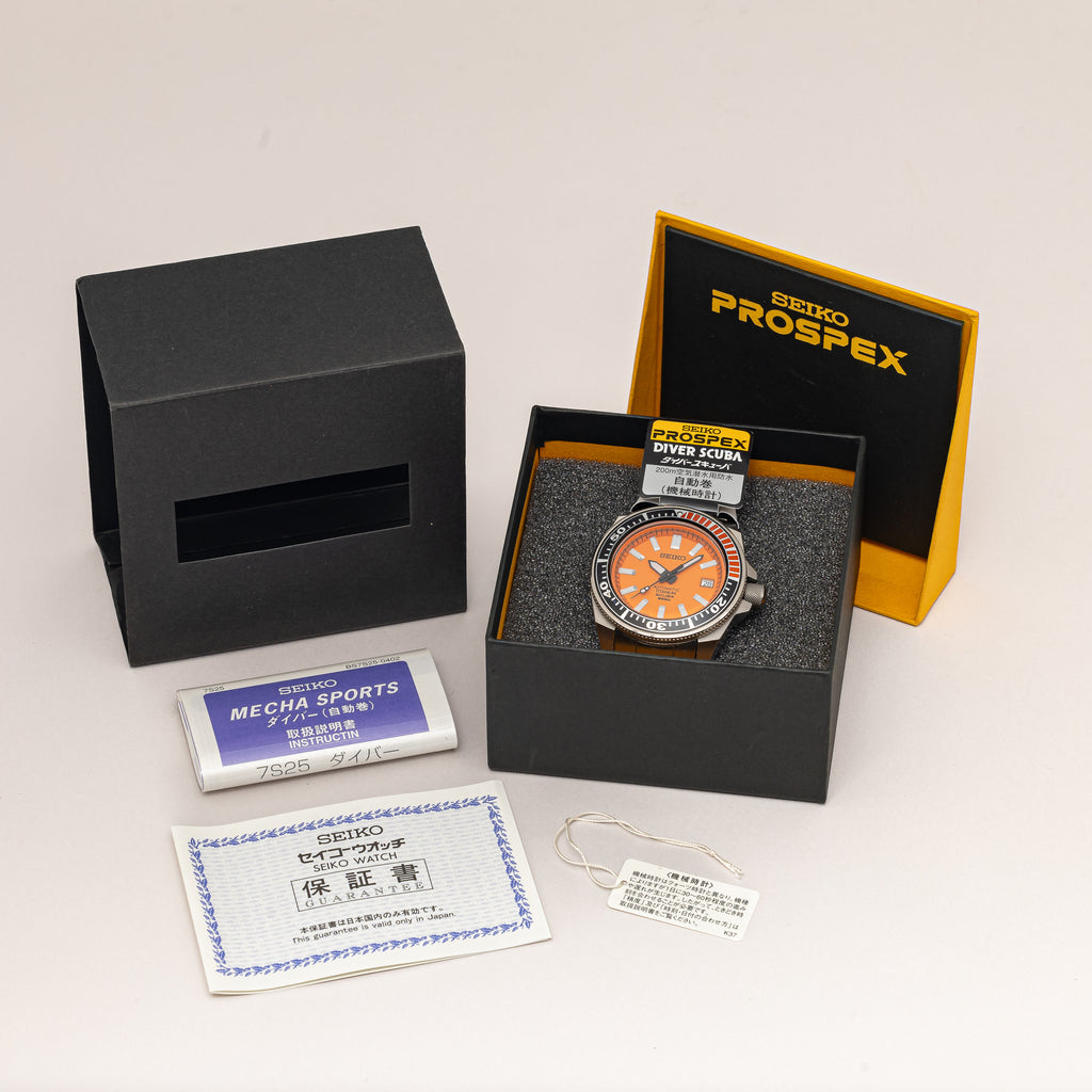 セイコー オレンジサムライ ダイバー 2004年製 箱、ギャラ、タグ付き 純正ブレス