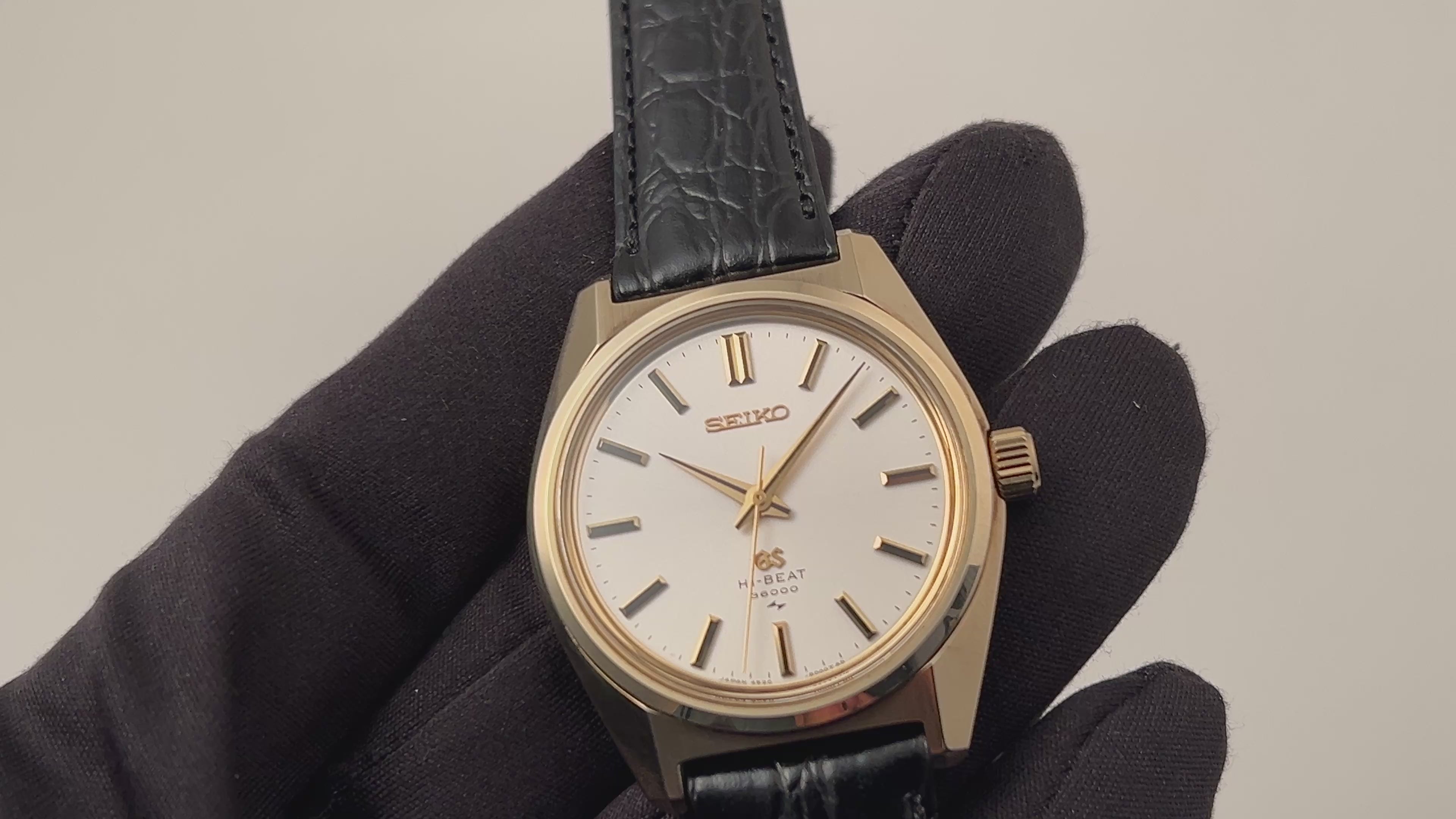グランドセイコー 1971年製 Ref.4520-8000 CAPゴールド 45GS 10振動手巻きの入荷になります。セイコースタイルと呼ばれる独自のケースデザインも魅力的なモデルで、それまで海外の高級時計を意識したデザインから独自のデザインに変わった年代です。文字盤はシンプルなシルバーにバーインデックスの使いやすい組み合わせです。CAP GOLDのケースは小傷はございますが大きなダメージはございません。ムーブメントは手巻き36000振動の4520Aを搭載、裏ブタのメダリオンもしっかり残っています。手巻きや針回しの操作はスムーズです。ベルトは社外のクロコダイルに純正尾錠が取り付けられています。
