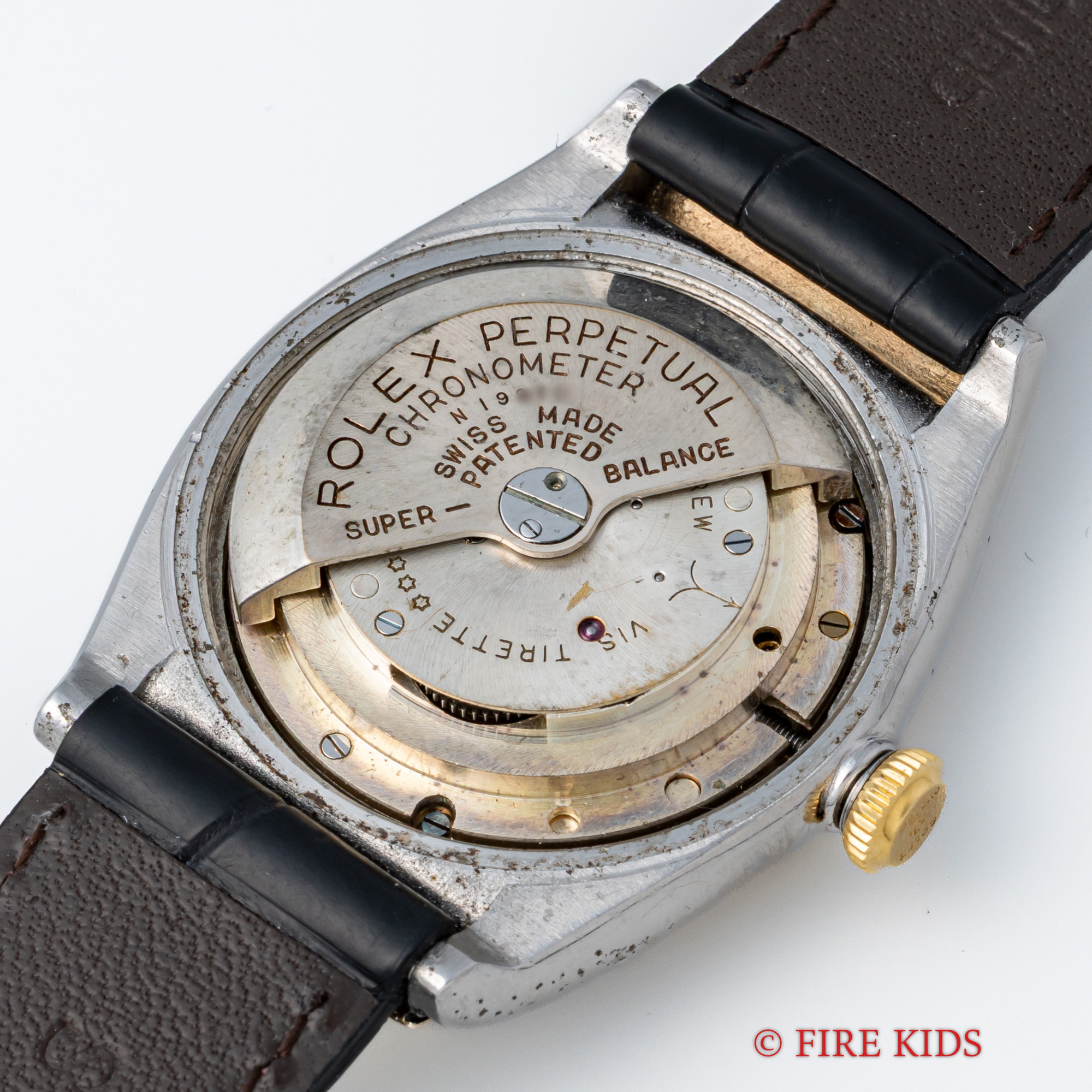 - ヴィンテージ時計の特性上、風防・パッキン・リューズ・バネ棒などの消耗部品は後年メンテナンス過程で交換されている場合がございます。オリジナル性を重視しておりますが、必要に応じて適切な部品にて調整されていますので、よりコレクション性重視のお求めのお客様は事前にご確認ください。