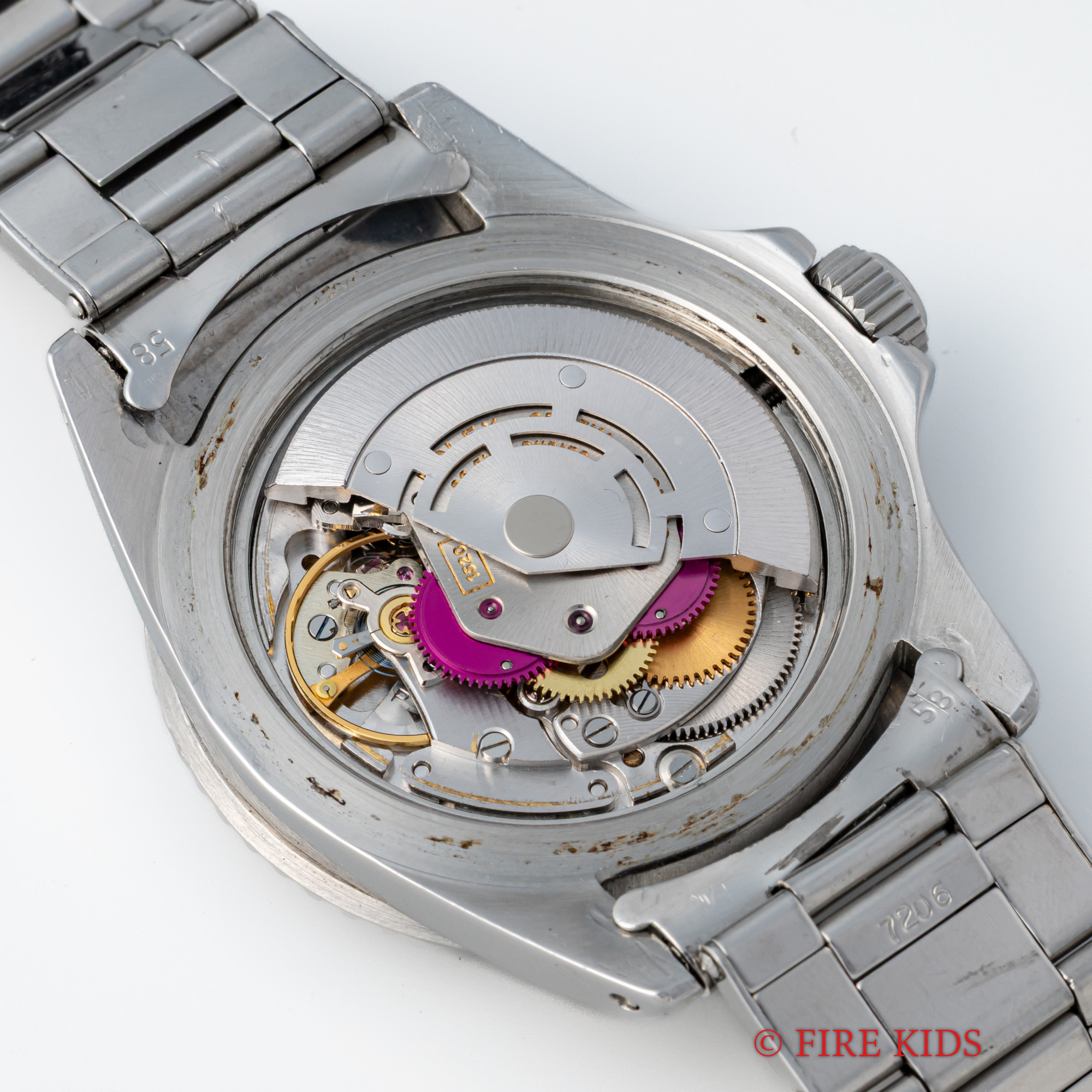 - ヴィンテージ時計の特性上、風防・パッキン・リューズ・バネ棒などの消耗部品は後年メンテナンス過程で交換されている場合がございます。オリジナル性を重視しておりますが、必要に応じて適切な部品にて調整されていますので、よりコレクション性重視のお求めのお客様は事前にご確認ください。